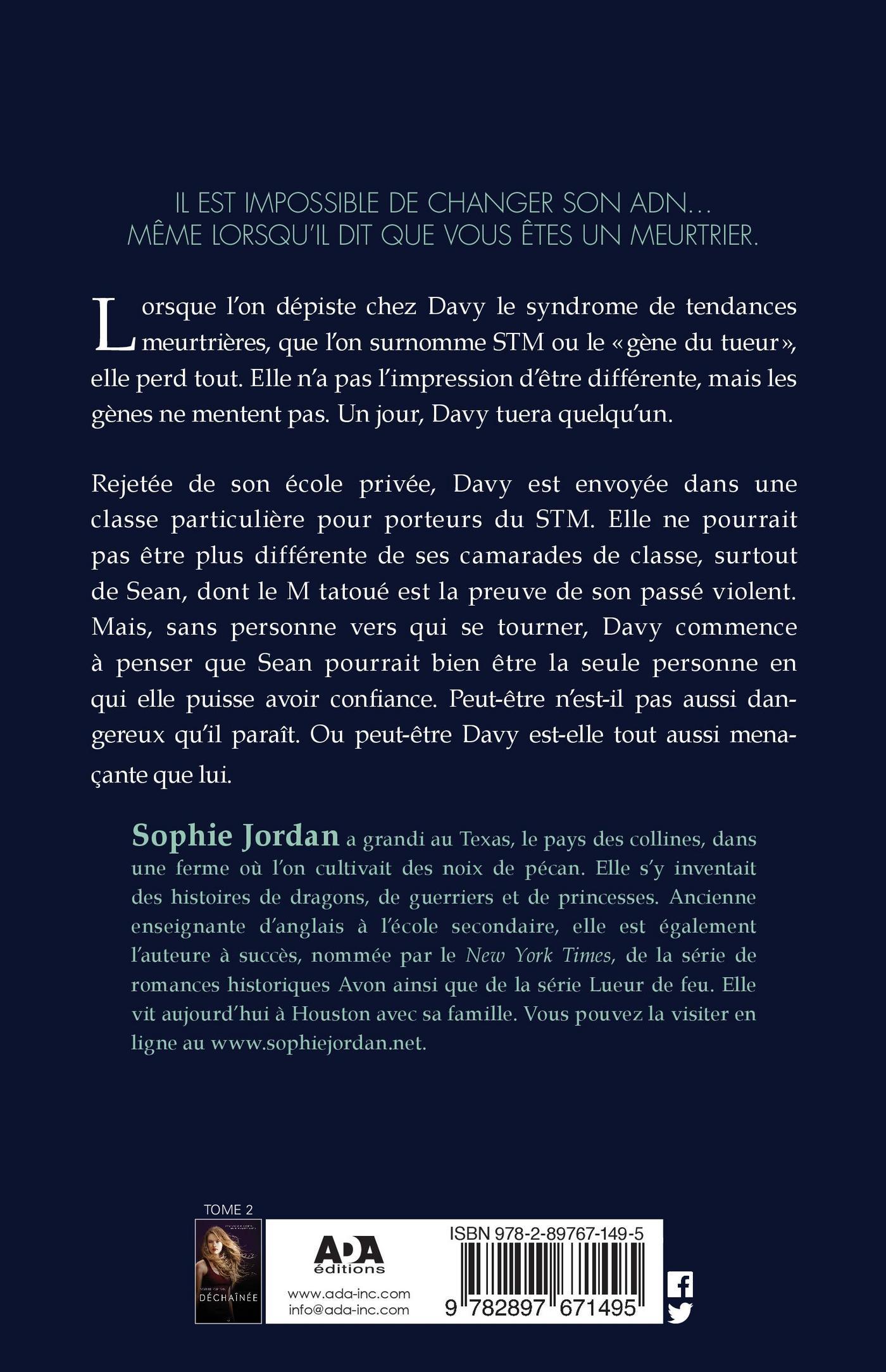 Il est impossible de changer son ADN… Même lorsqu’il dit que vous êtes un meurtrier. Lorsque l’on dépiste chez Davy le syndrome de tendances meurtrières, que l’on surnomme le «gène du tueur», elle perd tout. Elle n’a pas l’impression d’être différente, mais les gènes ne mentent pas. Un jour, Davy tuera quelqu’un. Indésirable de son école préparatoire, Davy est jetée dans une classe particulière pour porteurs du STM. Elle ne pourrait pas être plus différente de ses camarades de classe, surtout de Sean, dont le H tatoué est la preuve de son passé violent. Mais sans personne vers qui se tourner, Sean pourrait bien être la seule personne en qui elle puisse avoir confiance. Peut-être n’est-il pas aussi dangereux qu’il paraît. Ou peut-être Davy est-elle tout aussi menaçante que lui.