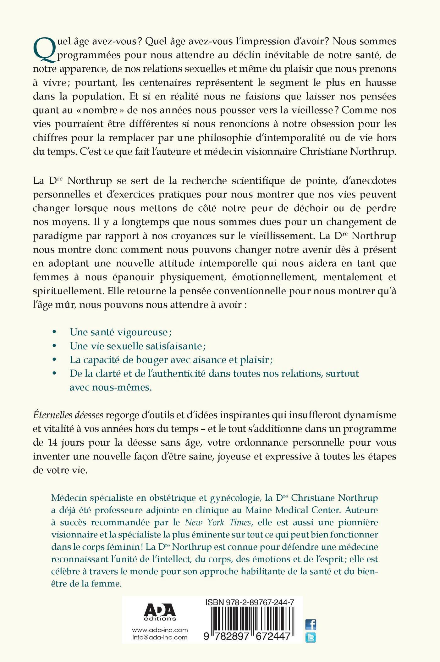 Quel âge avez-vous ? Quel âge avez-vous l’impression d’avoir ? Nous sommes programmées pour nous attendre au déclin inévitable de notre santé, de notre apparence, de nos relations sexuelles et même du plaisir que nous prenons à vivre; pourtant, les centenaires représentent le segment le plus en hausse dans la population. Et si en réalité nous ne faisions que laisser nos pensées quant au «nombre» de nos années nous pousser vers la vieillesse? Comme nos vies pourraient être différentes si nous renoncions à notre obsession pour les chiffres pour la remplacer par une philosophie d’intemporalité ou de vie hors du temps. C’est ce que fait l’auteure et médecin visionnaire Christiane Northrup.