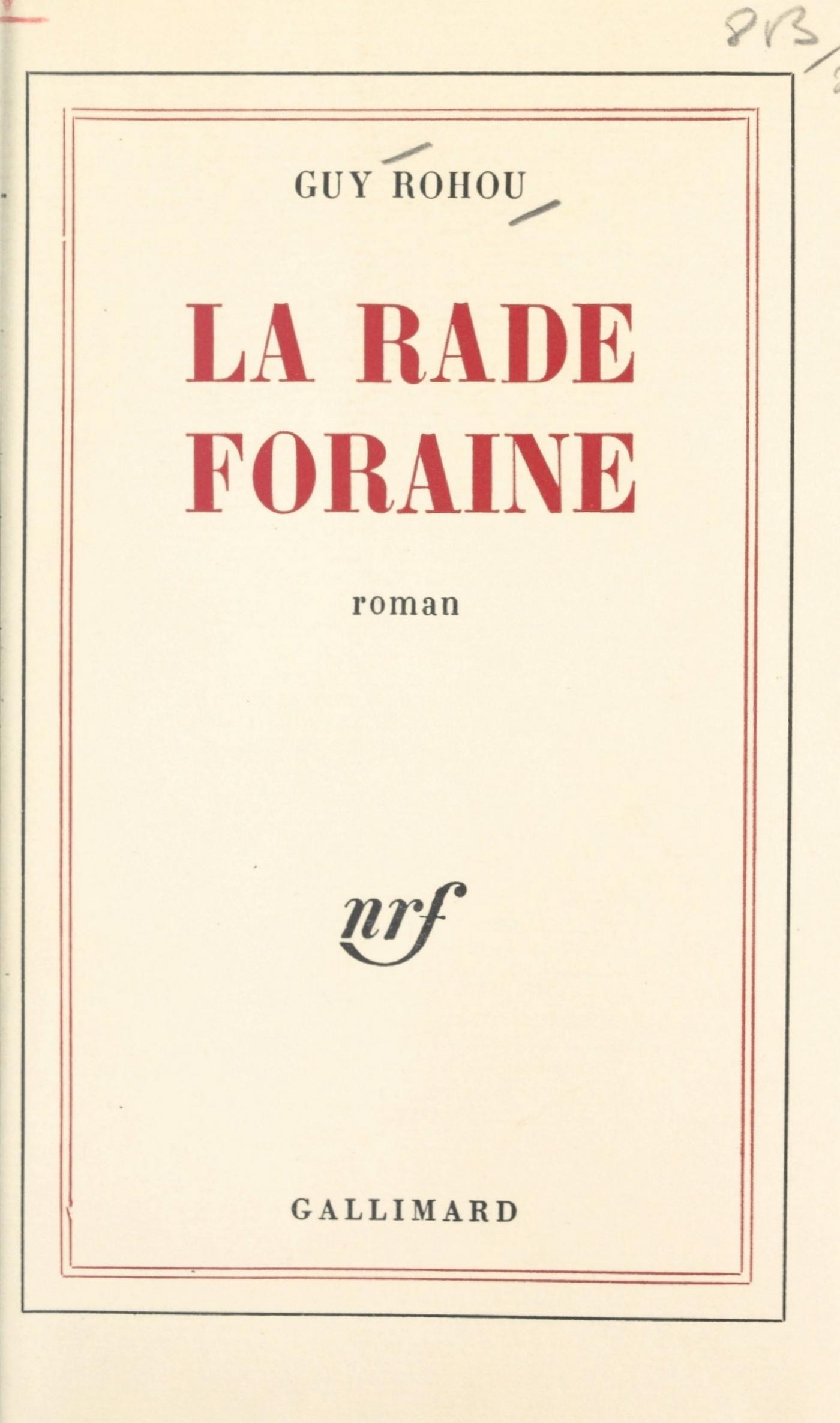 Rade foraine : « Ouverte aux vents et aux vagues du large » (Dictionnaire Robert). Un architecte, que sa femme, Clémence, a quitté depuis longtemps, vit retiré, avec sa fille Isabelle, dans une maison qui domine un village provençal. Il a reçu commande de préparer la maquette d’une nouvelle ville portuaire de la côte atlantique, qui devra s’élever sur les ruines de l’ancienne, détruite par les bombardements. Or, il se trouve que c’est précisément sa ville natale, celle où il a passé son enfance, et où il a connu sa femme. Tandis qu’il édifie soigneusement la maquette, au moyen d’ingrédients de fortune : carton, sable, bois, coton hydrophile, soie, l’emprise du passé devient telle, qu’il oublie de plus en plus le plan des urbanistes de la ville neuve. Il reconstitue telle rue, telle place, tel quartier, moitié avec ses souvenirs, moitié avec ses rêves. La maquette devient un théâtre en miniature, où il croit revoir les acteurs du passé. Ainsi, apparaissent l’Occupation allemande, mais aussi les Guerres de Religion, l’embarquement des forçats pour Cayenne... Et, surtout, certains lieux aident l’architecte à ne pas perdre le souvenir de sa femme, à éclaircir les motifs de sa fuite. Les lecteurs qui ont aimé "Le bateau des îles", prix Valery Larbaud 1971, reconnaîtront avec plaisir, dans ce livre, les thèmes qui font l’originalité de Guy Rohou.