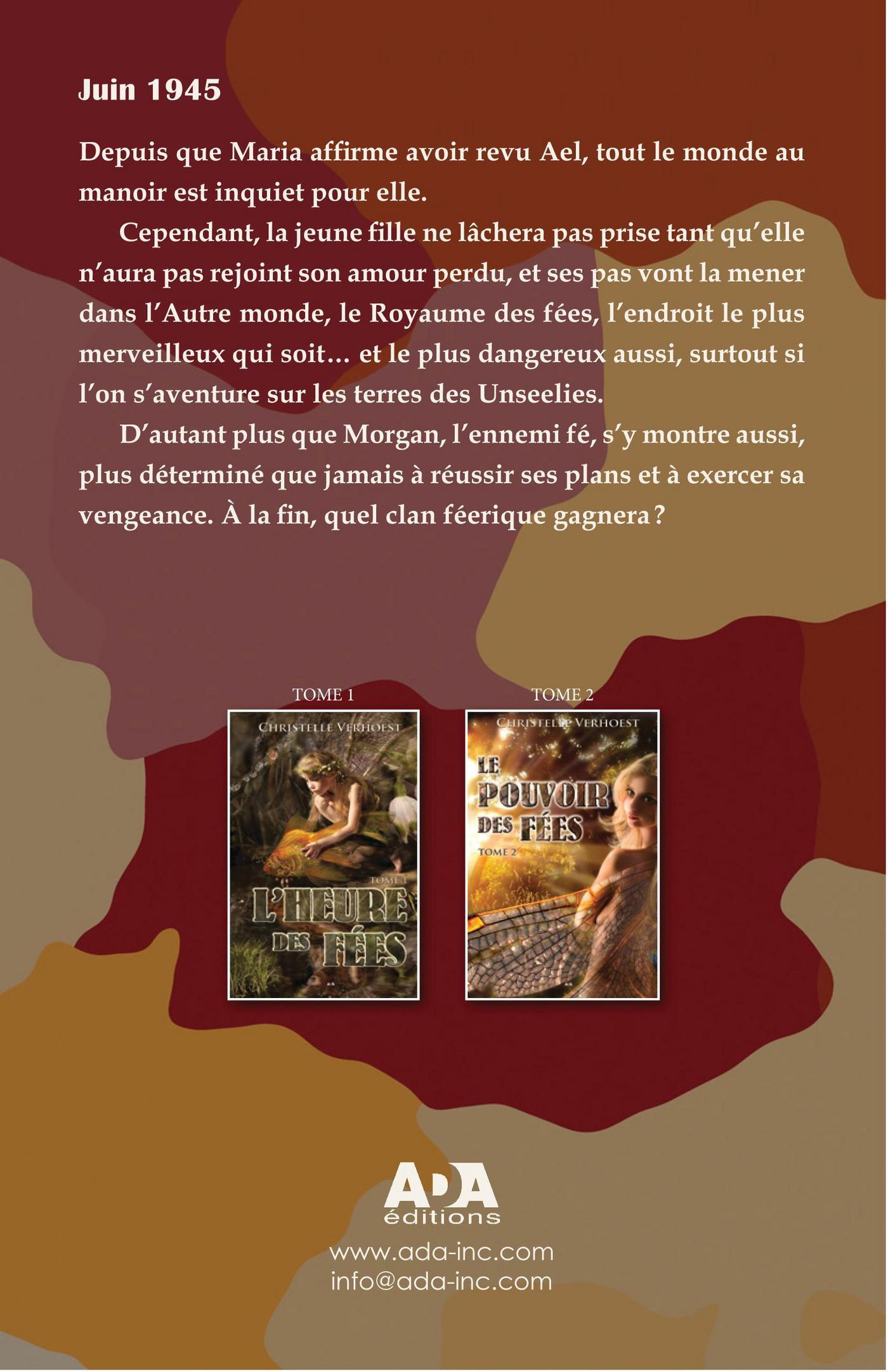 Depuis que Maria affirme avoir revu Ael, tout le monde au manoir est inquiet pour elle. Cependant, la jeune fille ne lâchera pas prise tant qu’elle n’aura pas rejoint son amour perdu, et ses pas vont la mener dans l’Autre Monde, le Royaume des fées, l’endroit le plus merveilleux qui soit… et le plus dangereux aussi, surtout si l’on s’aventure sur les terres des Unseelies. D’autant plus que Morgan, l’ennemi fé, s’y montre aussi, plus déterminé que jamais à réussir ses plans et exercer sa vengeance. À la fin, quel clan féerique gagnera?