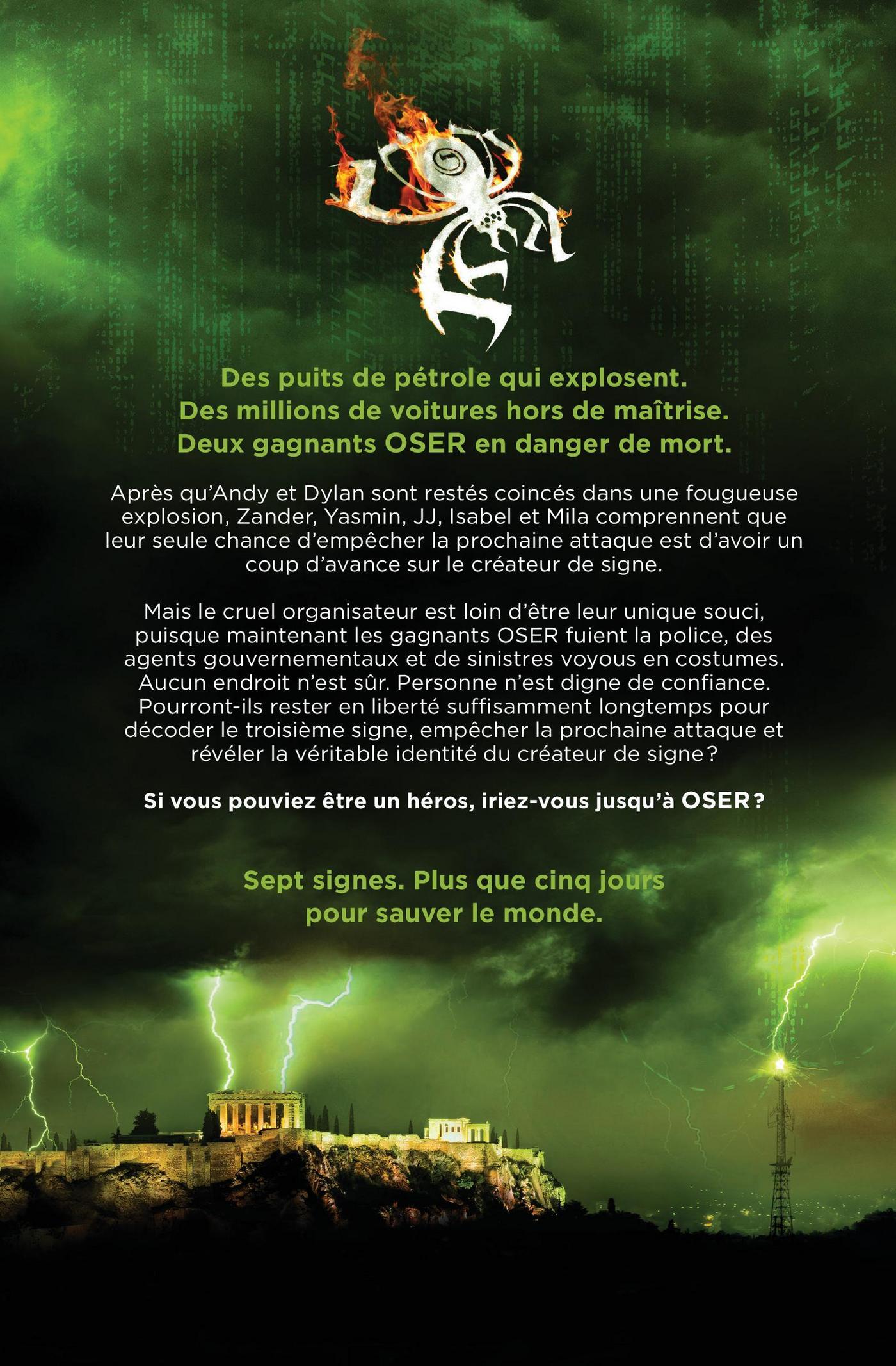 Après qu’Andy et Dylan restèrent coincés dans une fougueuse explosion, Zander, Yasmin, JJ, Isabel et Mila comprennent que leur seule chance d’empêcher la prochaine attaque est d’avoir un coup d’avance sur le créateur de signe.Mais le cruel organisateur est loin d’être leur unique souci, puisque maintenant les gagnants OSER fuirent la police, des agents gouvernementaux et de sinistres voyous en costumes.Aucun endroit n’est sûr. Personne n’est digne de confiance.Pourront-ils rester en liberté suffisamment longtemps pour décoder le troisième signe, empêcher la prochaine attaque et révéler la véritable identité du créateur de signe? Si vous pouviez être un héros, vous iriez jusqu’à OSER?