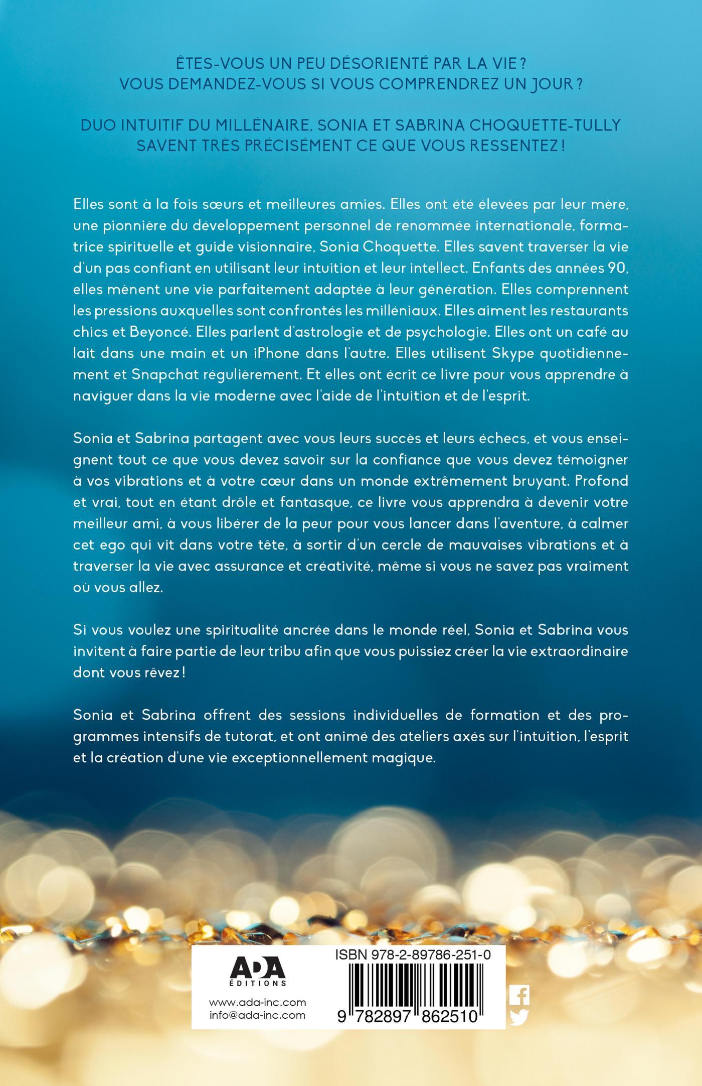 Êtes-vous un peu désorienté par la vie? Vous demandez-vous si vous comprendrez un jour ? Duo intuitif du millénaire, Sonia et Sabrina savent très précisément ce que vous ressentez!Sonia et Sabrina sont à la fois soeurs et meilleures amies. Élevées par leur mère, une formatrice spirituelle de renommée internationale et une guide visionnaire, elles savent traverser la vie d’un pas confiant, en utilisant leur intuition et leur intellect. Enfants des années 90, elles mènent une vie parfaitement adaptée à leur génération. Elles aiment les restaurants chics et Beyoncé. Elles parlent d’astrologie et de psychologie. Elles ont un café latte dans une main et un iPhone dans l’autre. Et elles ont écrit ce livre pour vous apprendre à naviguer dans la vie moderne avec l’aide de l’intuition et de l’Esprit.Sonia et Sabrina partagent avec vous leurs succès et leurs échecs, et vous enseignent tout ce que vous devez savoir sur la confiance que vous devez témoigner à vos vibrations et à votre coeur dans un monde extrêmement bruyant. Profond et vrai, tout en étant drôle et fantasque, ce livre vous apprendra à devenir votre meilleure amie, à vous libérer de la peur pour vous lancer dans l’aventure, à calmer cet ego qui vit dans votre tête, à sortir d’un cercle de mauvaises vibrations et à traverser la vie avec assurance et créativité, même si vous ne savez pas vraiment où vous allez. Si vous voulez une spiritualité ancrée dans le monde réel, Sonia et Sabrina vous invitent à faire partie de leur tribu afin que vous puissiez créer la vie extraordinaire dont vous rêvez!