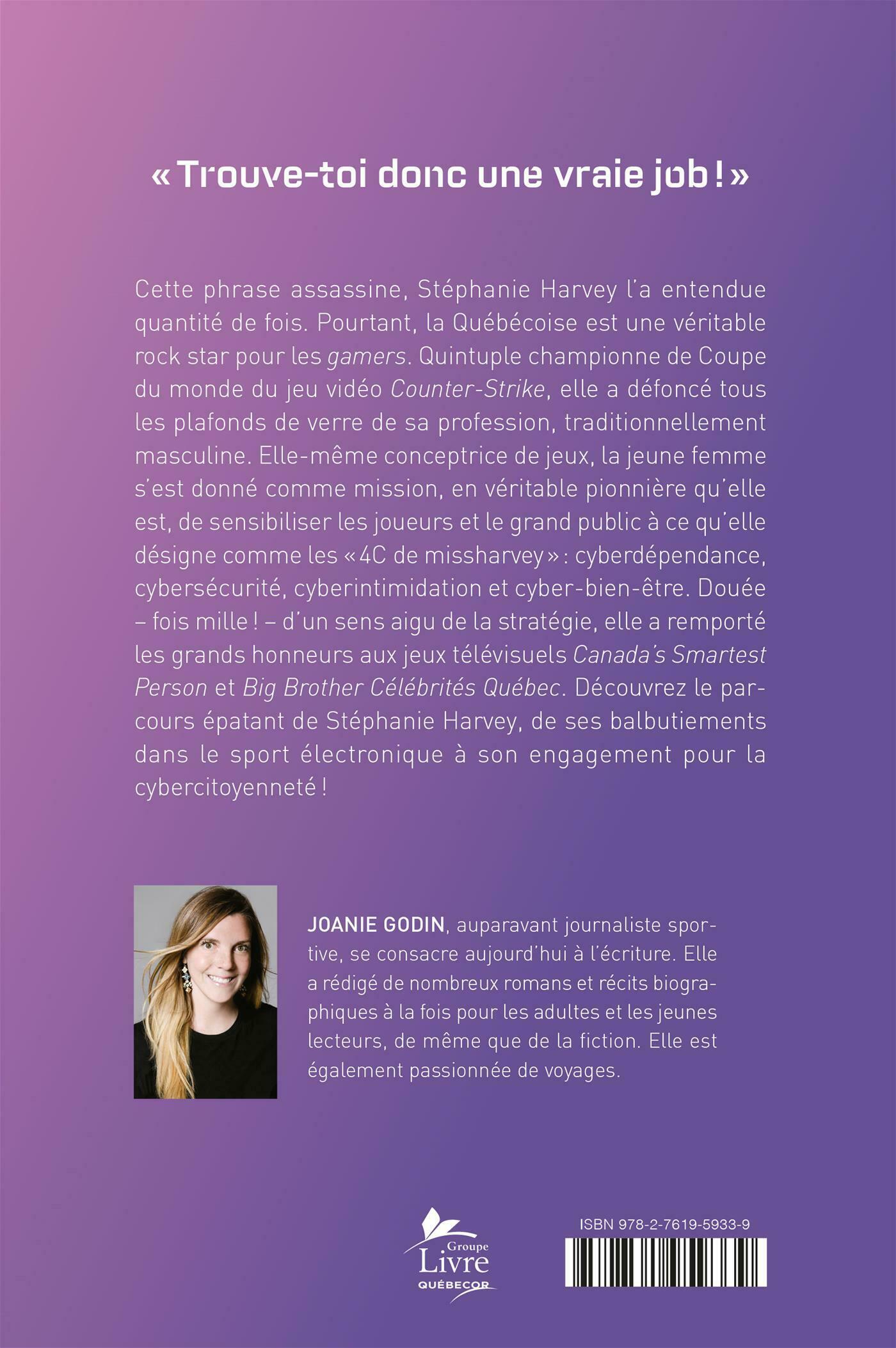 Elle-même conceptrice de jeux, la jeune femme s'est donné comme mission, en véritable pionnière qu'elle est, de sensibiliser les joueurs et le grand public à ce qu'elle désigne comme les «4C de missharvey»: cyberdépendance, cybersécurité, cyberintimidation et cyber-bien-être. Douée – fois mille! – d'un sens aigu de la stratégie, elle a remporté les grands honneurs aux jeux télévisuels Canada's Smartest Person et Big Brother Célébrités Québec.