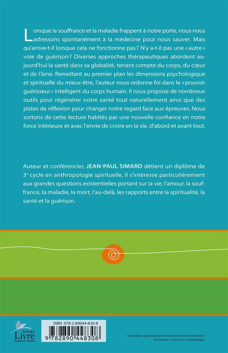 Lorsque la souffrance et la maladie frappent à notre porte, nous nous adressons spontanément à la médecine pour nous sauver. Mais qu'arrive-t-il lorsque cela ne fonctionne pas ? N'y a-t-il pas une « autre » voie de guérison ? Diverses approches thérapeutiques abordent aujourd'hui la santé dans sa globalité, tenant compte du corps, du cœur et de l'âme. Remettant au premier plan les dimensions psychologique et spirituelle du mieux-être, l'auteur nous redonne foi dans le « pouvoir guérisseur » intelligent du corps humain. Il nous propose de nombreux outils pour régénérer notre santé tout naturellement ainsi que des pistes de réflexion pour changer notre regard face aux épreuves. Nous sortons de cette lecture habités par une nouvelle confiance en notre force intérieure et avec l'envie de croire en la vie, d'abord et avant tout.