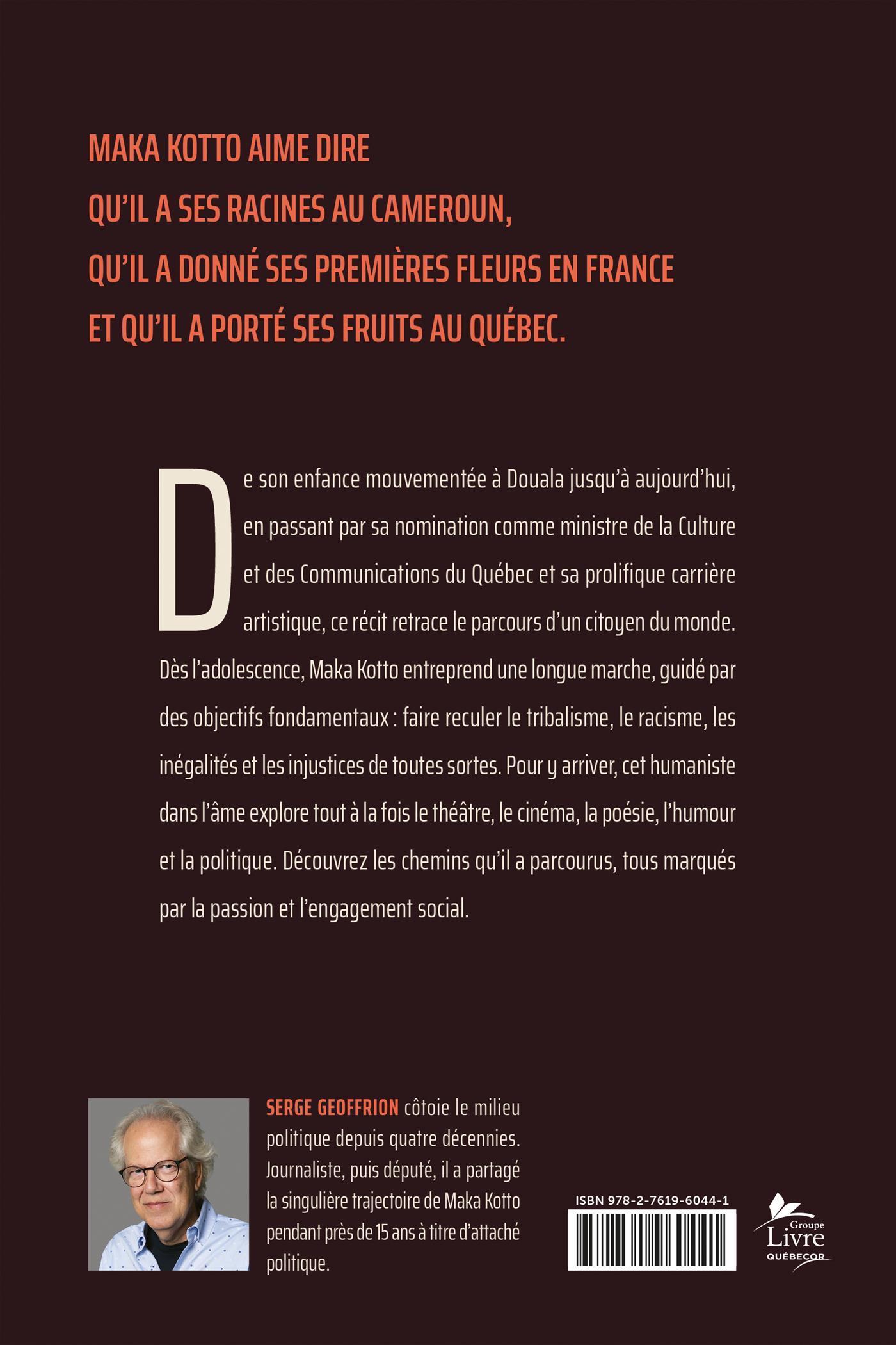 De son enfance mouvementée à Douala jusqu'à aujourd'hui, en passant par sa nomination comme ministre de la Culture et des Communications du Québec et sa prolifique carrière artistique, ce récit retrace le parcours d'un citoyen du monde. Dès l'adolescence, Maka Kotto entreprend une longue marche, guidé par des objectifs fondamentaux: faire reculer le tribalisme, le racisme, les inégalités et les injustices de toutes sortes.