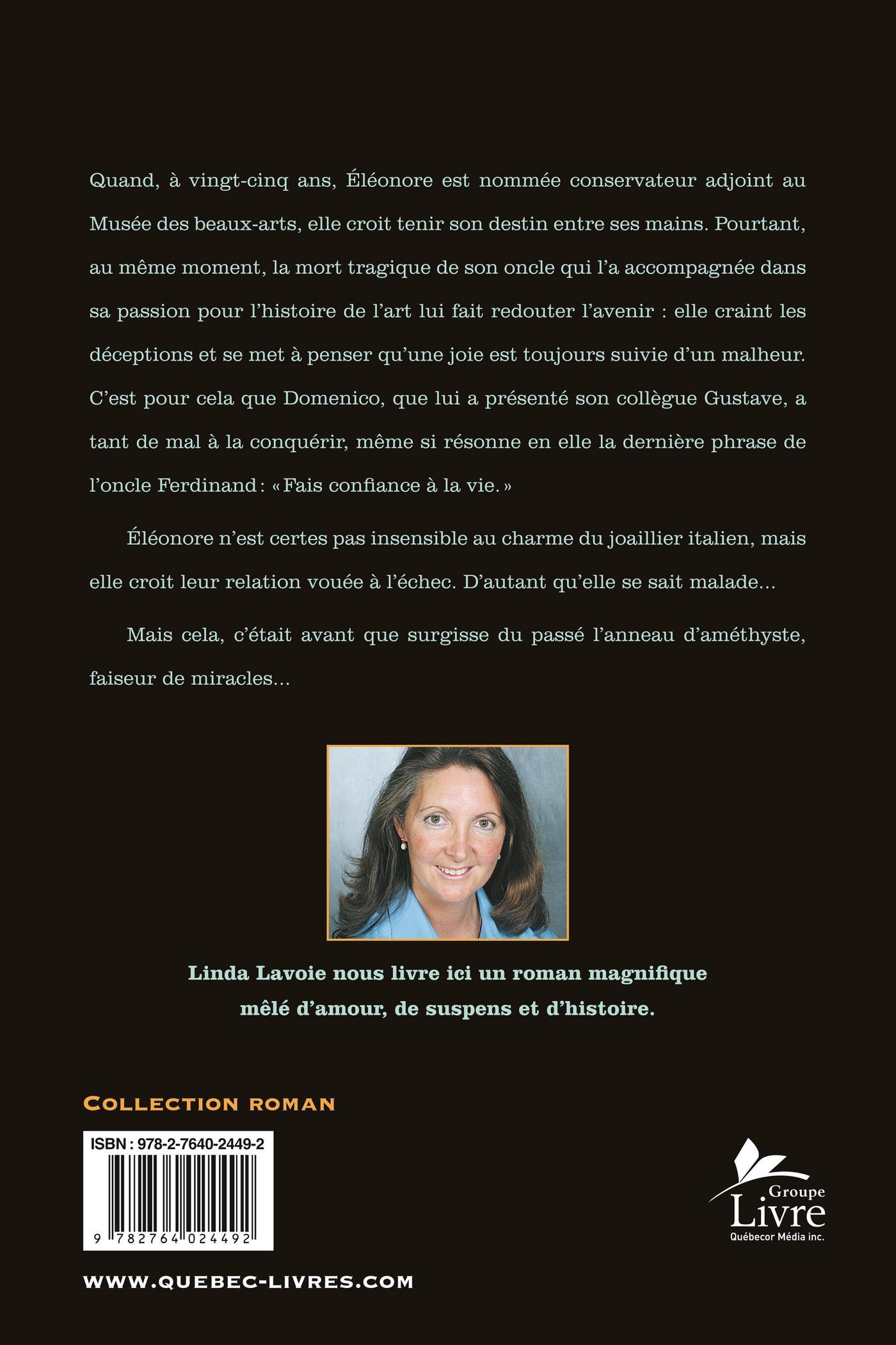 Quand, à vingt-cinq ans, Éléonore est nommée conservateur adjoint au Musée des beaux-arts, elle croit tenir son destin entre ses mains. Pourtant, au même moment, la mort tragique de son oncle qui l'a accompagnée dans sa passion pour l'histoire de l'art lui fait redouter l'avenir : elle craint les déceptions et se met à penser qu'une joie est toujours suivie d'un malheur. C'est pour cela que Domenico, que lui a présenté son collègue Gustave, a tant de mal à la conquérir, même si résonne en elle la dernière phrase de l'oncle Ferdinand : « Fais confiance à la vie. »