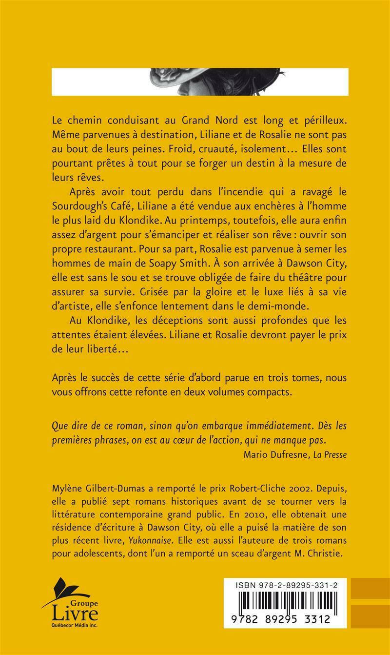 .. Après avoir tout perdu dans l'incendie qui a ravagé le Sourdough's Café, Liliane a été vendue aux enchères à l'homme le plus laid du Klondike. Au printemps, toutefois, elle aura enfin assez d'argent pour s'émanciper et réaliser son rêve : ouvrir son propre restaurant. Pour sa part, Rosalie est parvenue à semer les hommes de main de Soapy Smith. À son arrivée à Dawson City, elle estsans le sou et se trouve obligée de faire du théâtre pour assurer sa survie. Grisée par la gloire et le luxe liés à sa vie d'artiste, elle s'enfonce lentement dans le demi-monde.