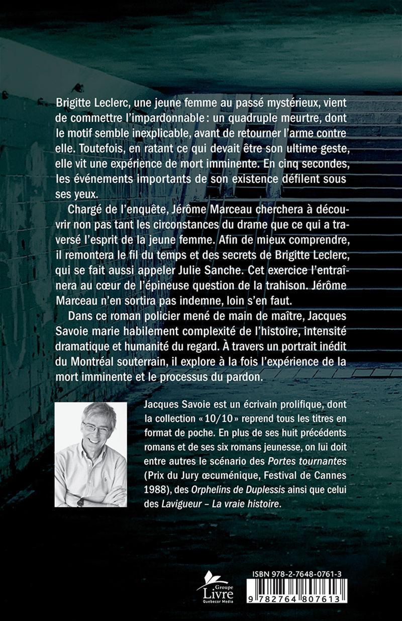 Jérôme Marceau n'en sortira pas indemne, loin s'en faut. À travers un portrait inédit du Montréal souterrain, Jacques Savoie explore à la fois l'expérience de la mort imminente et le processus du pardon.