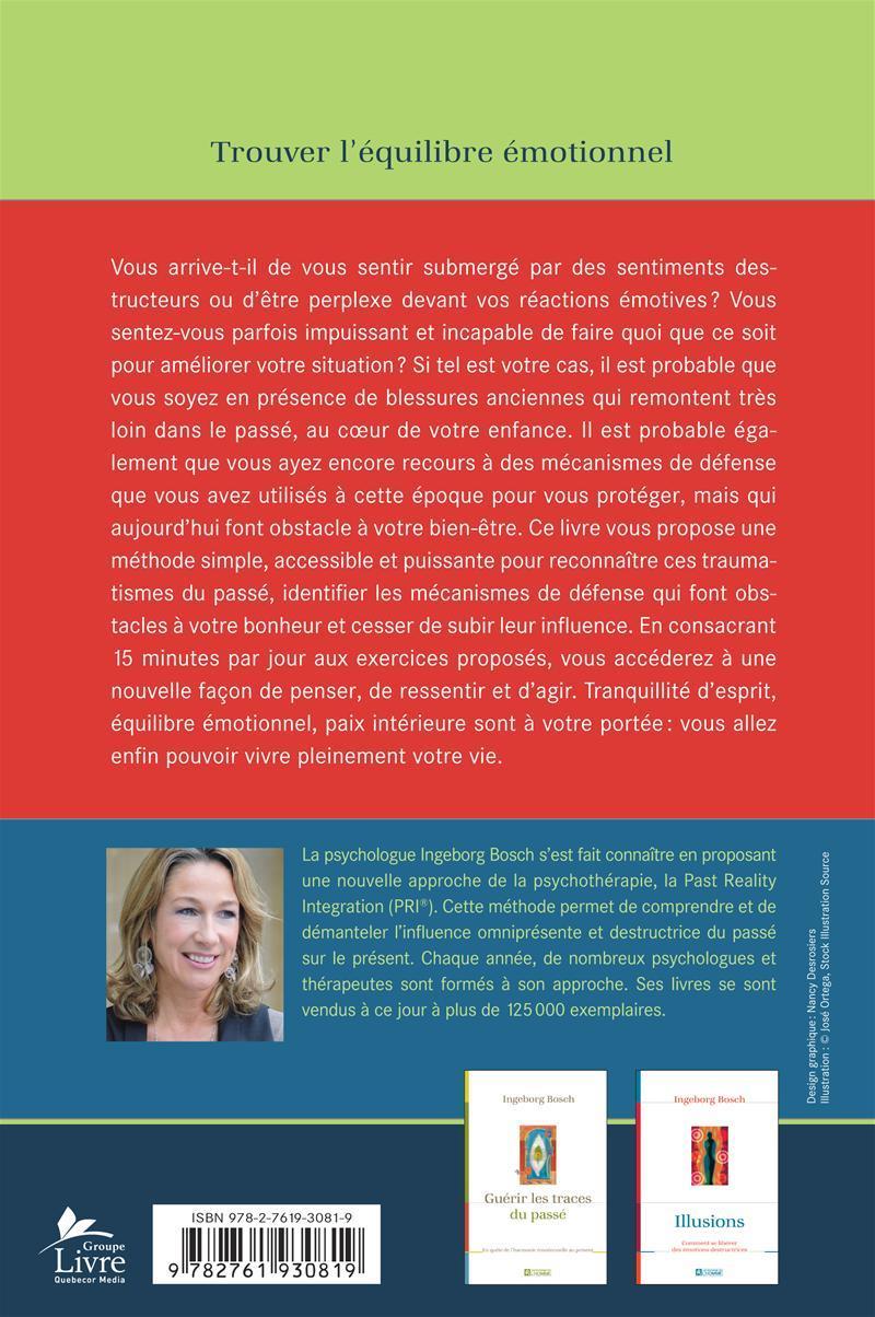 Vous arrive-t-il de vous sentir submergé par des sentiments destructeurs ou d'être perplexe devant vos réactions émotives? Vous sentez-vous parfois impuissant et incapable de faire quoi que ce soit pour améliorer votre situation? Si tel est votre cas, il est probable que vous soyez en présence de blessures anciennes qui remontent très loin dans le passé, au cœur de votre enfance. Il est probable également que vous ayez encore recours à des mécanismes de défense que vous avez utilisés à cette époque pour vous protéger, mais qui aujourd'hui font obstacle à votre bien-être. Ce livre vous propose une méthode simple, accessible et puissante pour reconnaître ces traumatismes du passé, identifier les mécanismes de défense qui font obstacles à votre bonheur et cesser de subir leur influence. En consacrant 15 minutes par jour aux exercices proposés, vous accéderez à une nouvelle façon de penser, de ressentir et d'agir. Tranquillité d'esprit, équilibre émotionnel, paix intérieure sont à votre portée: vous allez enfin pouvoir vivre pleinement votre vie.