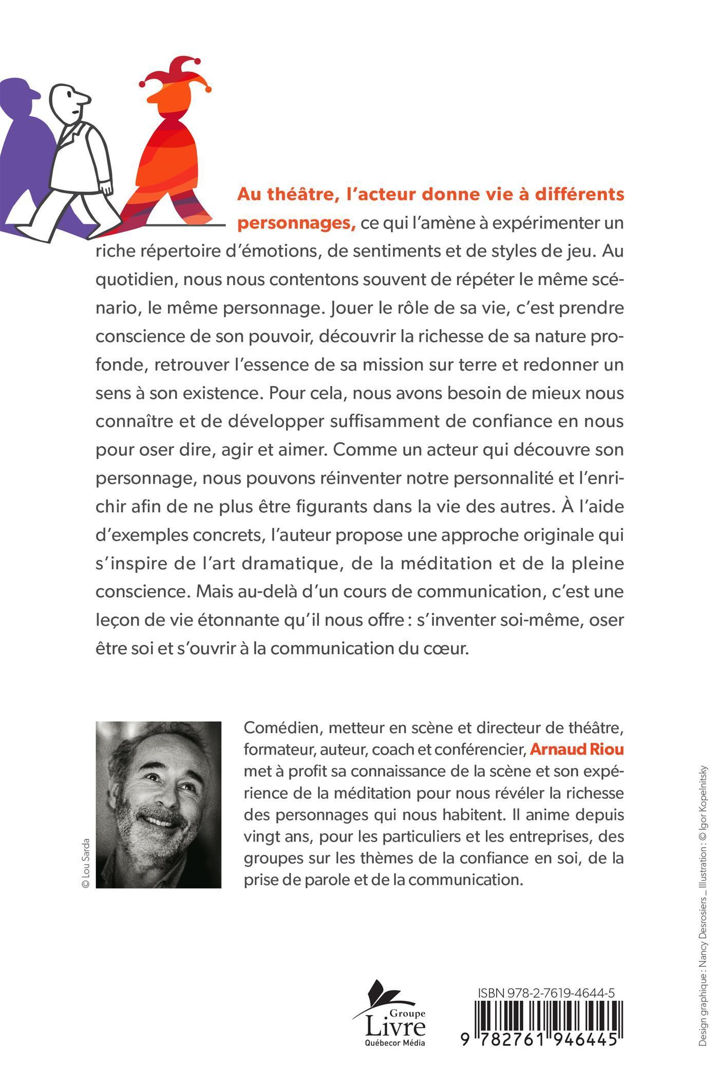 Au théâtre, l'acteur donne vie à différents personnages, ce qui l'amène à expérimenter un riche répertoire d'émotions, de sentiments et de styles de jeu. Au quotidien, nous nous contentons souvent de répéter le même scénario, le même personnage. Jouer le rôle de sa vie, c'est prendre conscience de son pouvoir, découvrir la richesse de sa nature profonde, retrouver l'essence de sa mission sur terre et redonner un sens à son existence. Pour cela, nous avons besoin de mieux nous connaître et de développer suffisamment de confiance en nous pour oser dire, agir et aimer. Comme un acteur qui découvre son personnage, nous pouvons réinventer notre personnalité et l'enrichir afin de ne plus être figurants dans la vie des autres. À l'aide d'exemples concrets, l'auteur propose une approche originale qui s'inspire de l'art dramatique, de la méditation et de la pleine conscience. Mais au-delà d'un cours de communication, c'est une leçon de vie étonnante qu'il nous offre: s'inventer soi-même, oser être soi et s'ouvrir à la communication du cœur.