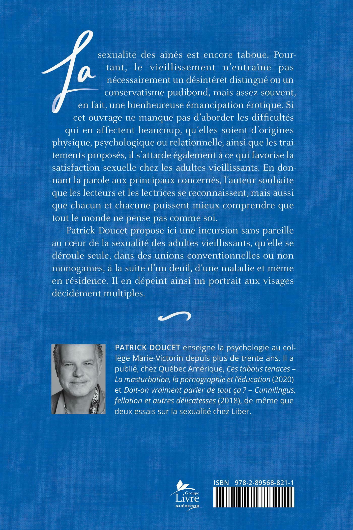 Patrick Doucet propose ici une incursion sans pareille au cœur de la sexualité des adultes vieillissants, qu'elle se déroule seule, dans des unions conventionnelles ou non monogames, à la suite d'un deuil, d'une maladie et même en résidence. Il en dépeint ainsi un portrait aux visages décidément multiples.