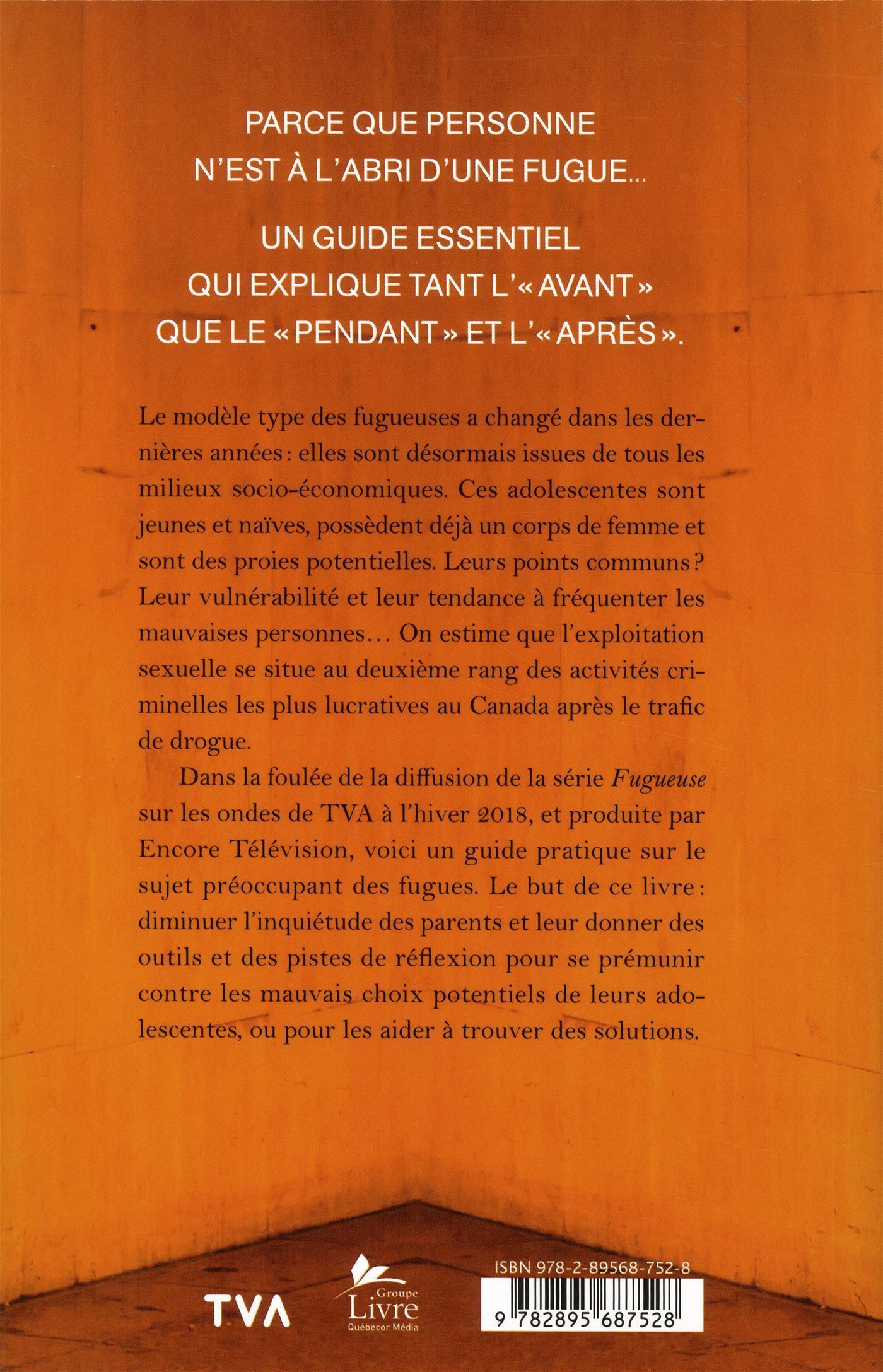 Dans la foulée de la diffusion de la série Fugueuse sur les ondes de TVA à l'hiver 2018, et produite par Encore Télévision, voici un guide pratique sur le sujet préoccupant des fugues. Le but de ce livre : diminuer l'inquiétude des parents et leur donner des outils et des pistes de réflexion pour se prémunir contre les mauvais choix potentiels de leurs adolescentes, ou pour les aider à trouver des solutions.