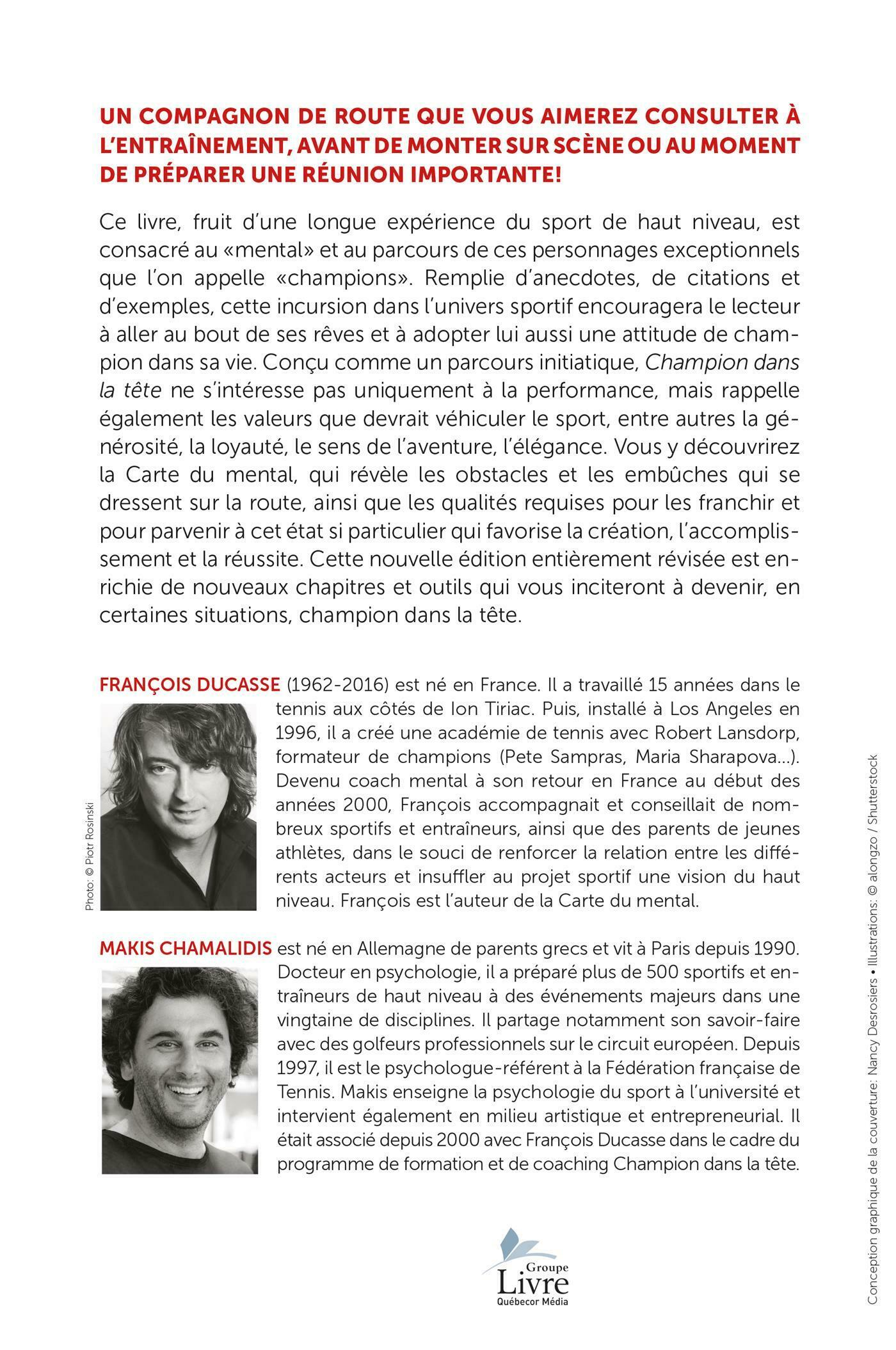 Champion dans la tête ne s'intéresse pas uniquement à la performance, mais rappelle également les valeurs que devrait véhiculer le sport, entre autres la générosité, la loyauté, le sens de l'aventure, l'élégance. Vous y découvrirez la Carte du mental, qui révèle les obstacles et les embûches qui se dressent sur la route, ainsi que les qualités requises pour les franchir et pour parvenir à cet état si particulier qui favorise la création, l'accomplissement et la réussite.
