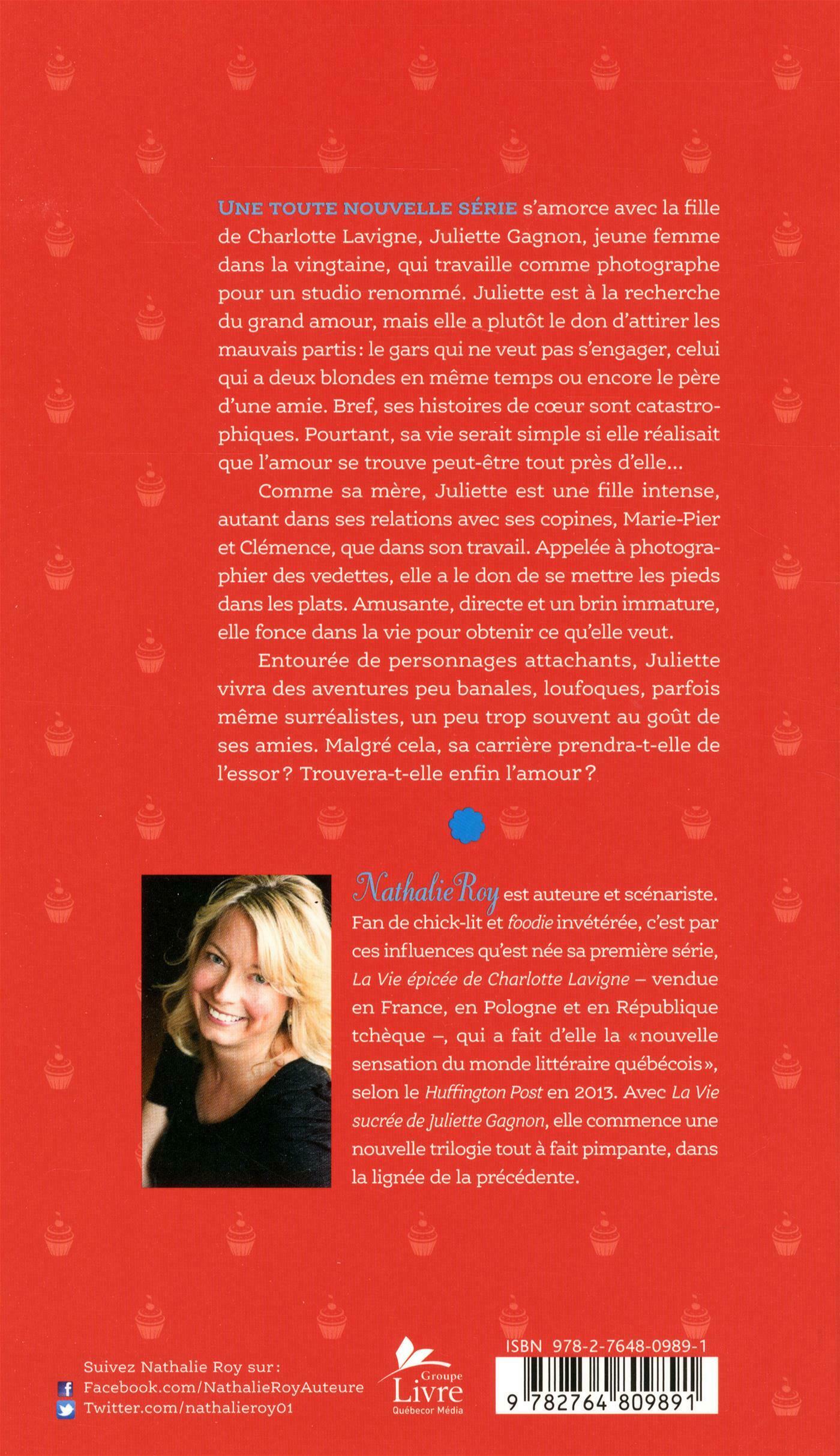 .Nathalie Roy est auteure et scénariste. Elle-même fan de chick-lit et foodie invétérée, l'auteure a signé La Vie épicée de Charlotte Lavigne, sa première série, qui en a fait la « nouvelle sensation du monde littéraire québécois », selon le Huffington Post. La Vie sucrée de Juliette Gagnon est sa toute pimpante deuxième série, dans la lignée de la précédente.