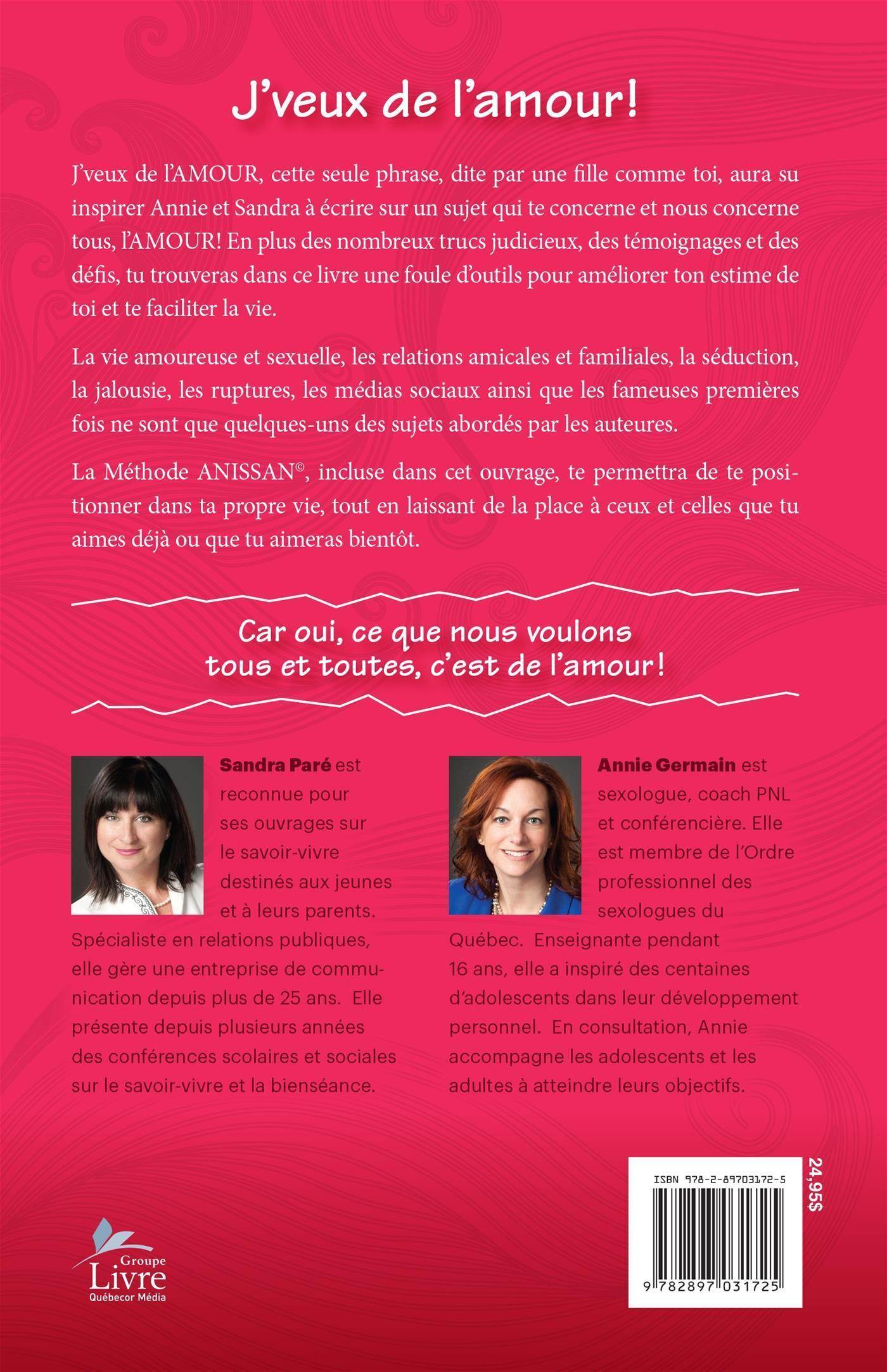 J'veux de l'AMOUR, cette seule phrase, dite par une fille comme toi, aura su inspirer Annie et Sandra à écrire sur un sujet qui te concerne et nous concerne tous, l'AMOUR! En plus des nombreux trucs judicieux, des témoignages et des défis, tu trouveras dans ce livre une foule d'outils pour améliorer ton estime de toi et te faciliter la vie.
