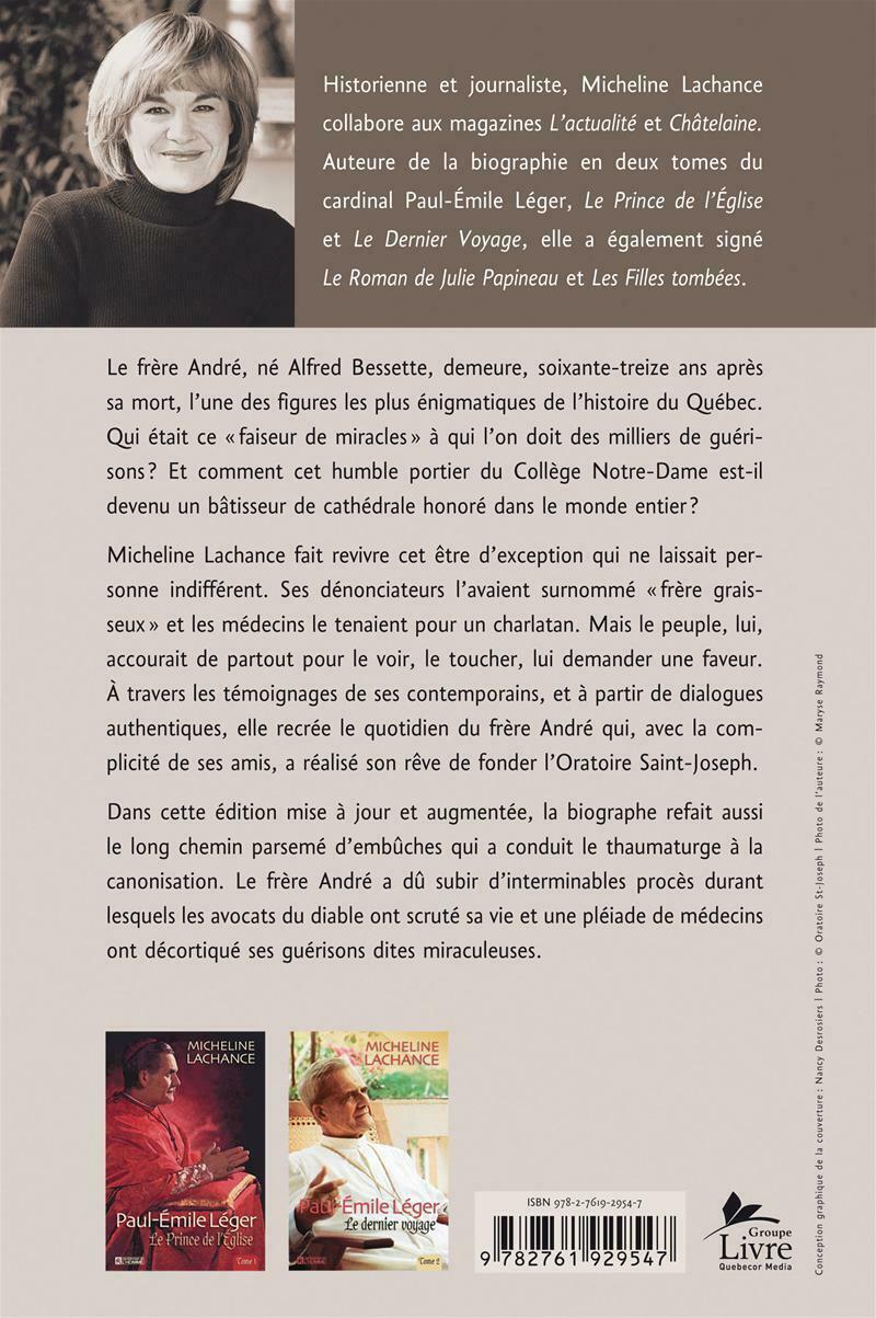 . Dans cette édition mise à jour et augmentée, la biographe refait aussi le long chemin parsemé d'embûches qui a conduit le thaumaturge à la canonisation. Le frère André a dû subir d'interminables procès durant lesquels les avocats du diable ont scruté sa vie et une pléiade de médecins ont décortiqué ses guérisons dites miraculeuses.