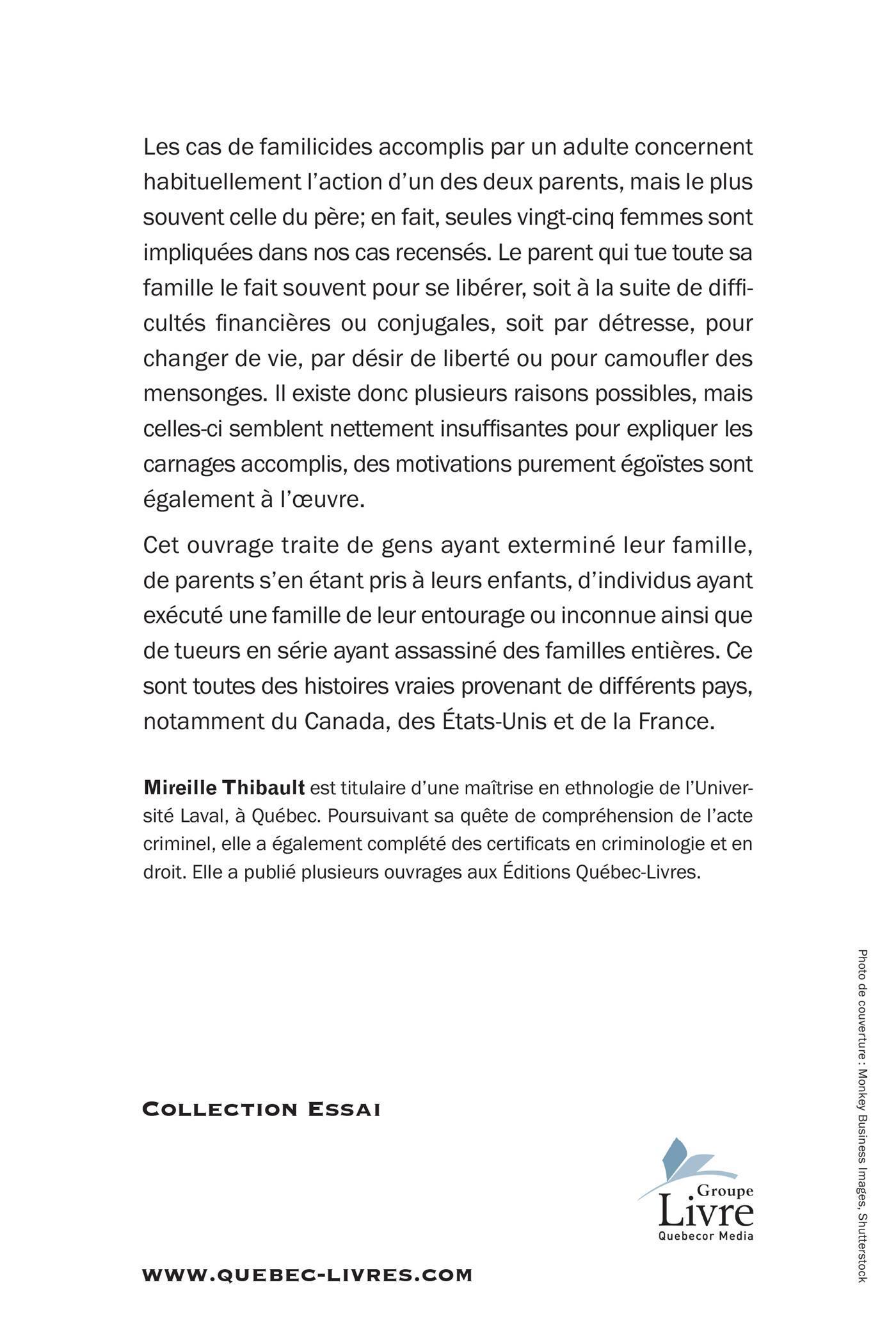Cet ouvrage traite de gens ayant exterminé leur famille, de parents s'en étant pris à leurs enfants, d'individus ayant assassiné des familles entières. ce sont toutes des histoires vraies provenant de différents pays, notamment du Canada, des États-unis et de la France
