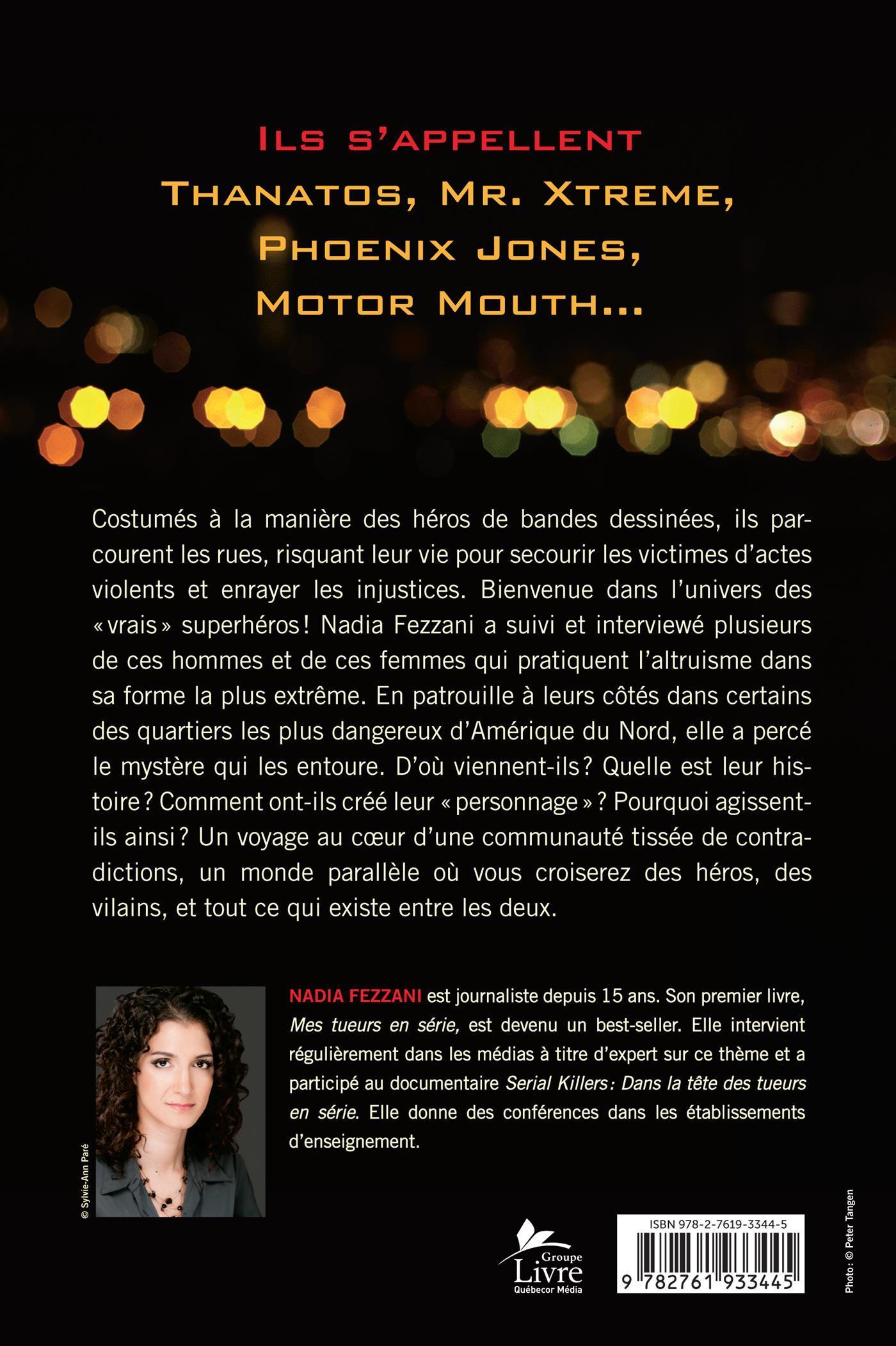 Costumés à la manière des héros de bandes dessinées, ils parcourent les rues, risquant leur vie pour secourir les victimes d'actes violents et enrayer les injustices. Bienvenue dans l'univers des «vrais» superhéros! Nadia Fezzani a suivi et interviewé plusieurs de ces hommes et de ces femmes qui pratiquent l'altruisme dans sa forme la plus extrême. En patrouille à leurs côtés dans certains des quartiers les plus dangereux d'Amérique du Nord, elle a percé le mystère qui les entoure. D'où viennent-ils? Quelle est leur histoire? Comment ont-ils créé leur «personnage»? Pourquoi agissent-ils ainsi? Un voyage au cœur d'une communauté tissée de contradictions, un monde parallèle où vous croiserez des héros, des vilains, et tout ce qui existe entre les deux.