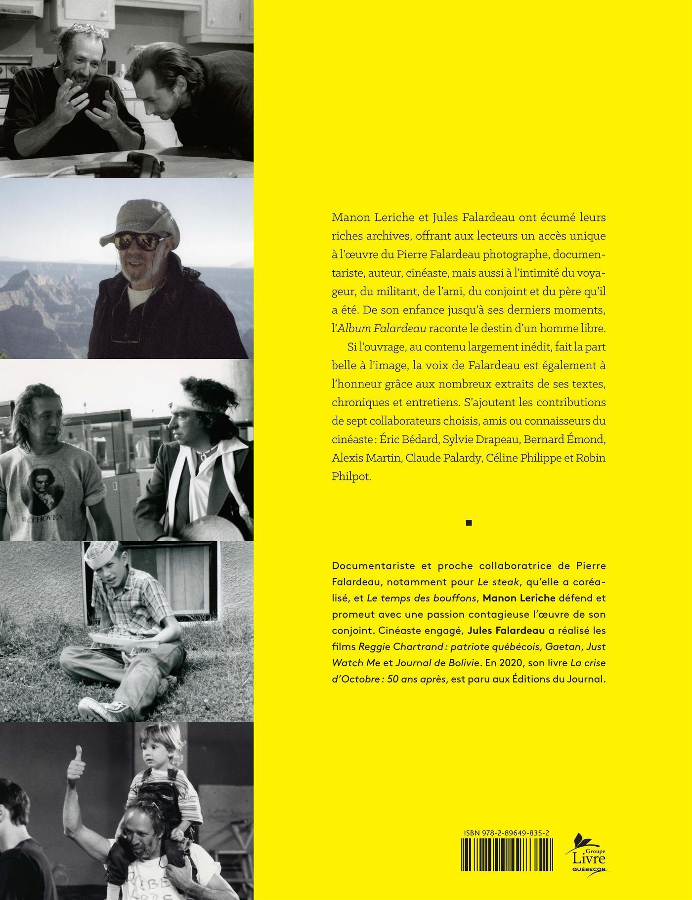 Manon Leriche et Jules Falardeau ont écumé leurs riches archives, offrant aux lecteurs un accès unique à l'œuvre du Pierre Falardeau photographe, documentariste, auteur, cinéaste, mais aussi à l'intimité du voyageur, du militant, de l'ami, du conjoint et du père qu'il a été. De son enfance jusqu'à ses derniers moments, l'Album Falardeau raconte le destin d'un homme libre.