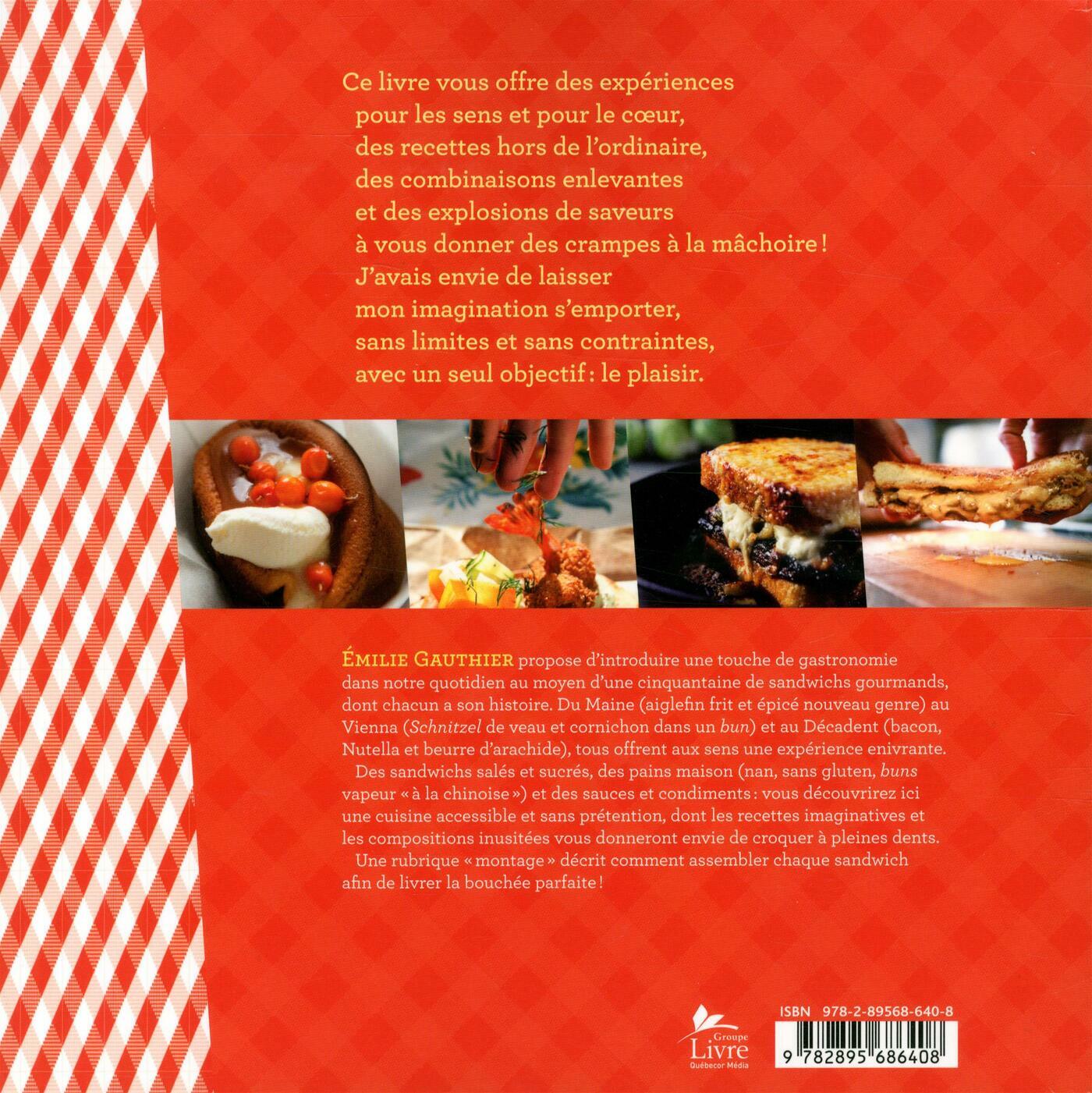 Émilie Gauthier propose d'introduire une touche de gastronomie dans notre quotidien au moyen d'une cinquantaine de sandwichs gourmands, dont chacun a son histoire. Du Maine (aiglefin frit et épicé nouveau genre) au Vienna (Schnitzel de veau et cornichon dans un bun) et au Décadent (bacon, Nutella et beurre d'arachide), tous offrent aux sens une expérience enivrante.
