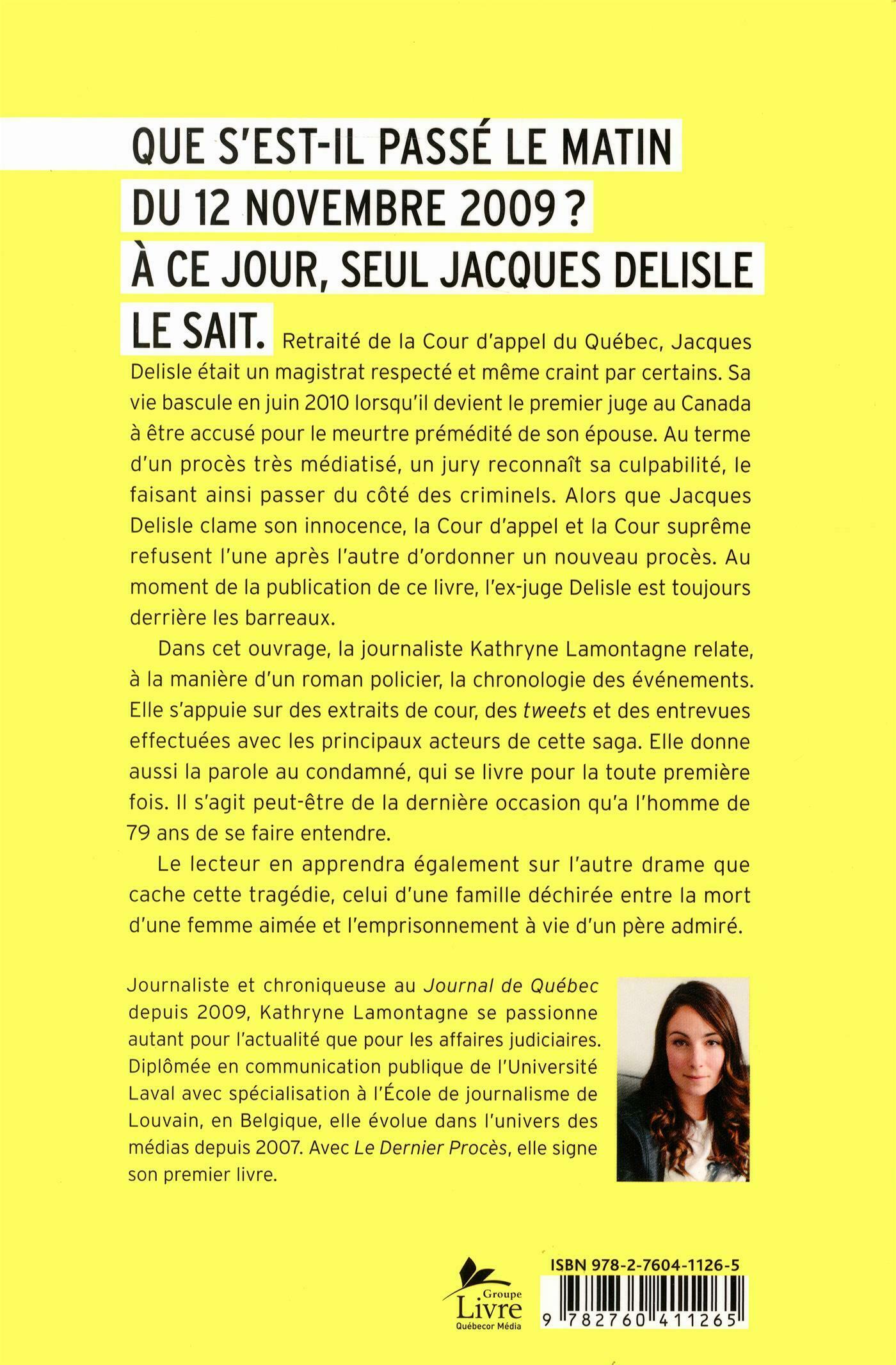 ..Retraité de la Cour d'appel du Québec, Jacques Delisle était un magistrat respecté et même craint par certains. Sa vie bascule en juin 2010 lorsqu'il devient le premier juge au Canada à être accusé pour le meurtre prémédité de son épouse. Au terme d'un procès très médiatisé, un jury reconnaît sa culpabilité, le faisant ainsi passer du côté des criminels. Alors que Jacques Delisle clame son innocence, la Cour d'appel et la Cour suprême refusent l'une après l'autre d'ordonner un nouveau procès. Au moment de la publication de ce livre, l'ex-juge Delisle est toujours derrière les barreaux.