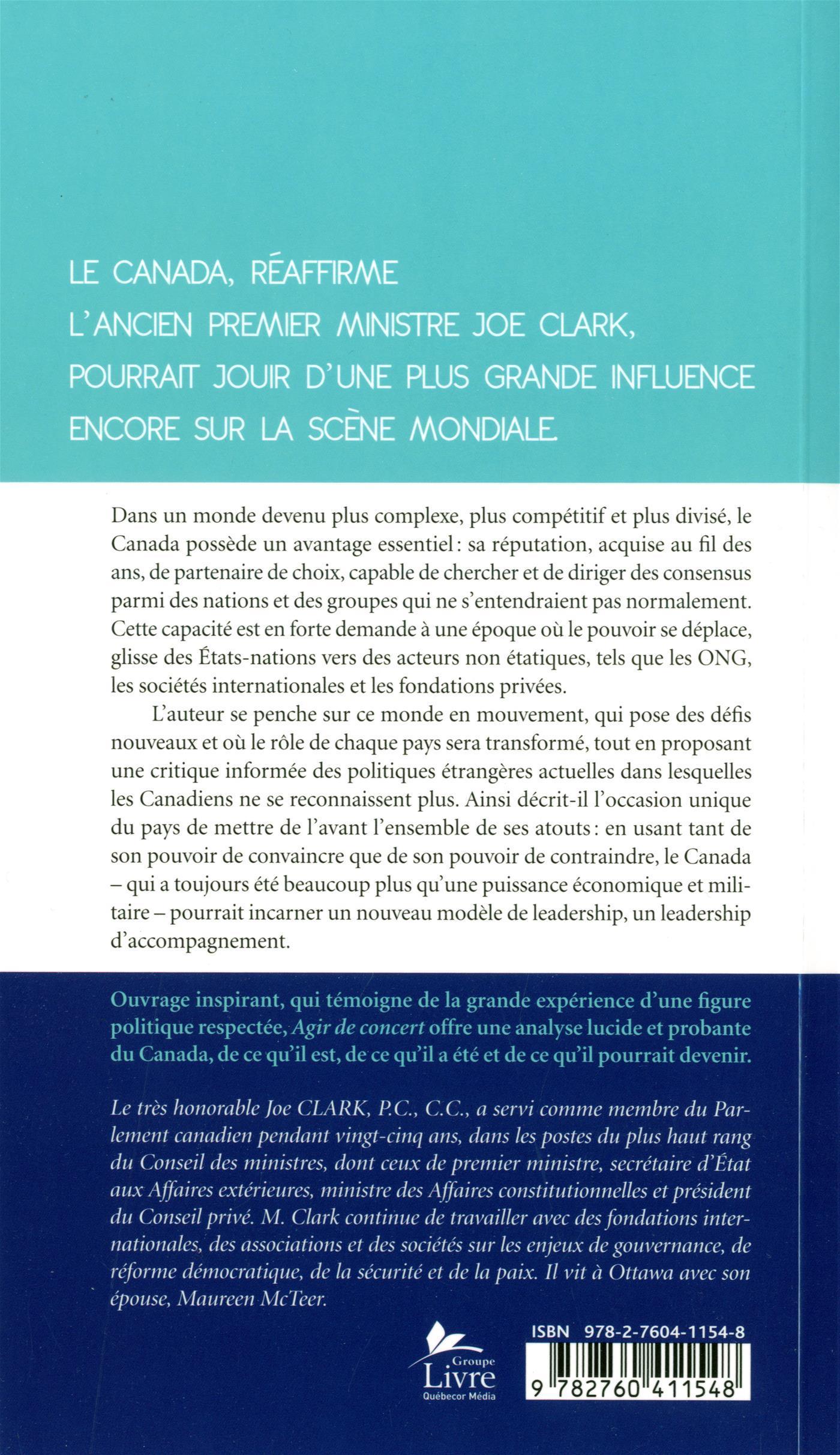 Ouvrage inspirant, qui témoigne de la grande expérience d'une figure politique respectée, Agir de concert offre une analyse lucide et probante du Canada, de ce qu'il est, de ce qu'il a été et de ce qu'il pourrait devenir.