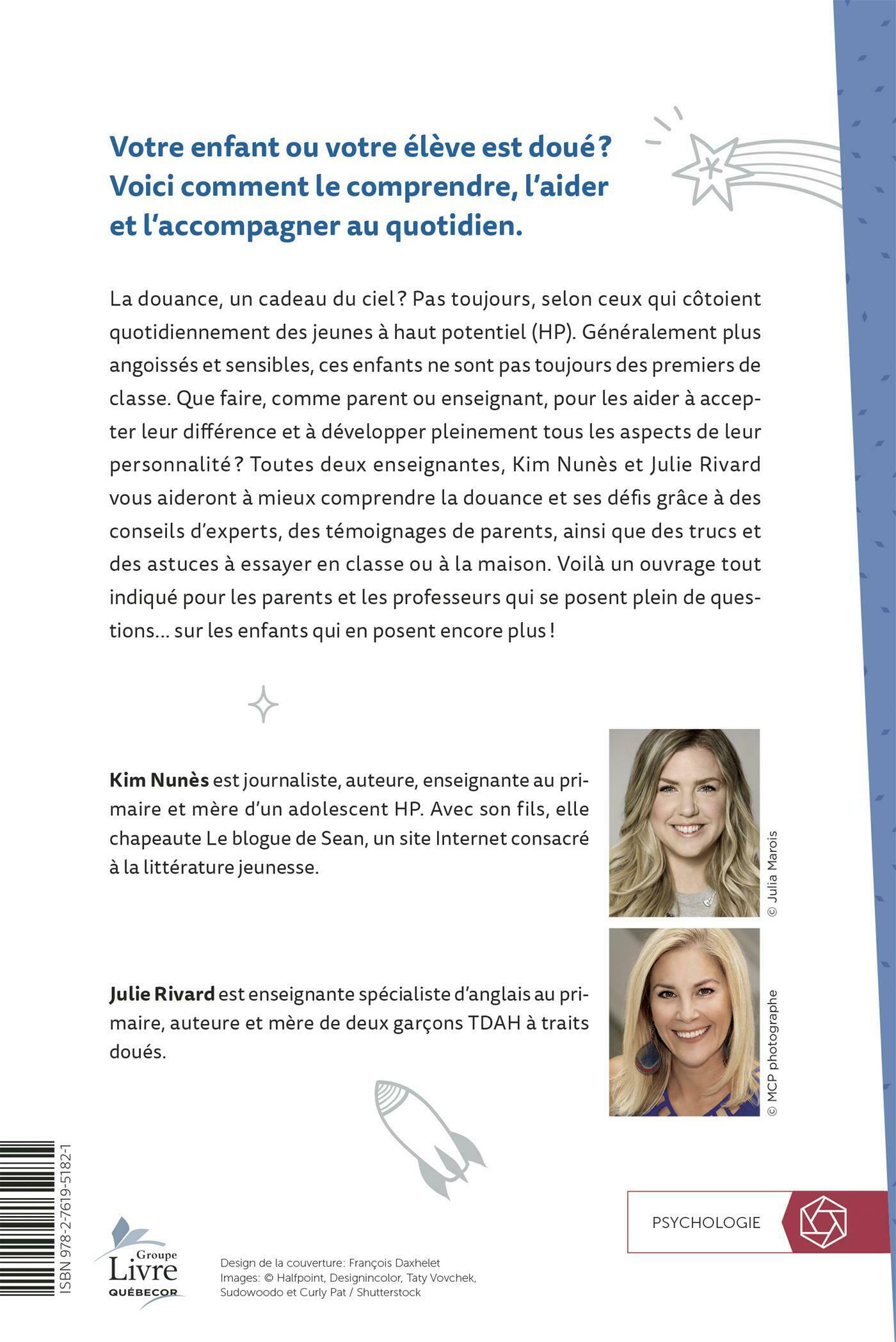 .Que faire, comme parent ou enseignant, pour les aider à accepter leur différence et à développer pleinement tous les aspects de leur personnalité? Toutes deux enseignantes, Kim Nunès et Julie Rivard vous aideront à mieux comprendre la douance et ses défis grâce à des conseils d'experts, des témoignages de parents, ainsi que des trucs et des astuces à essayer en classe ou à la maison.