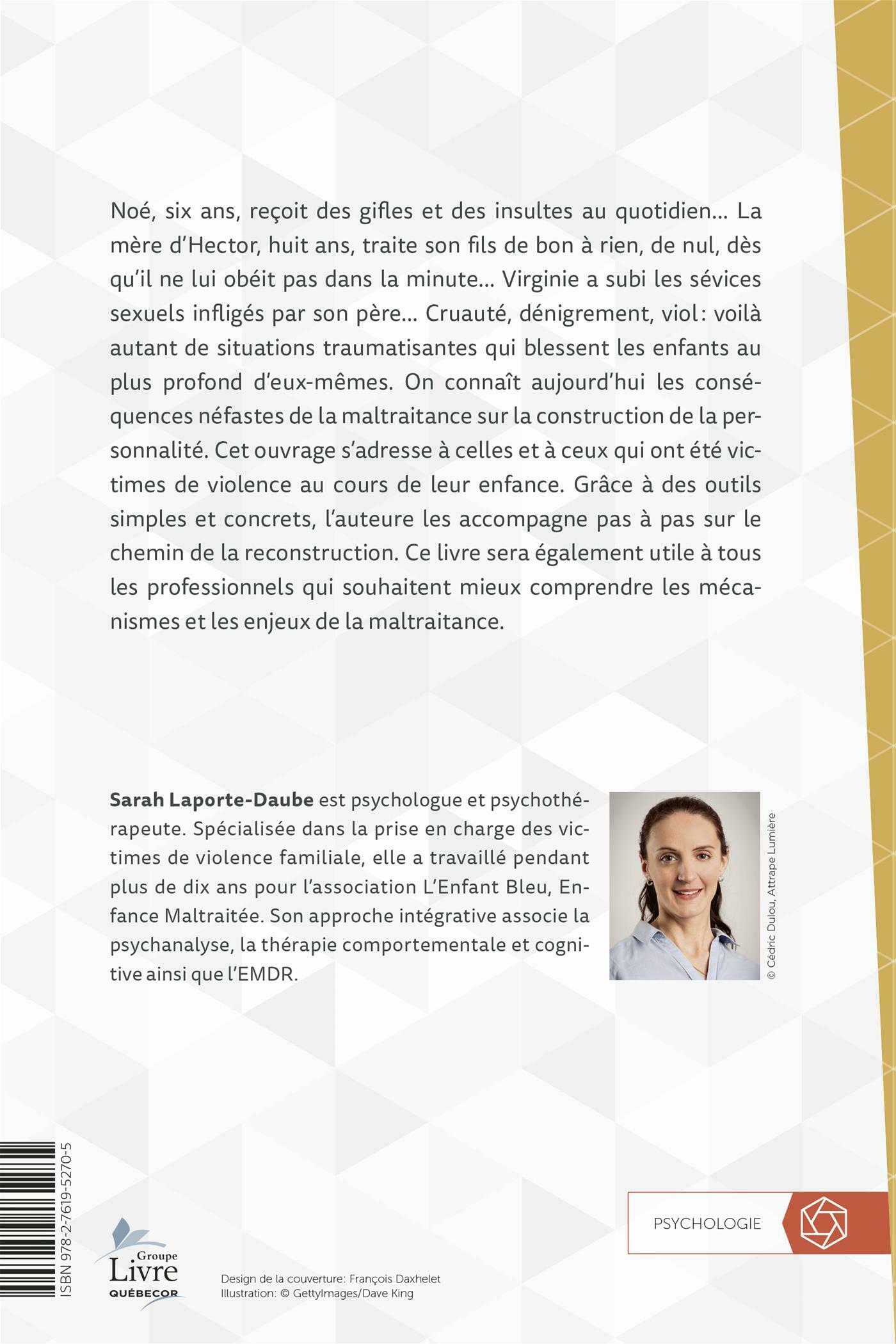.On connaît aujourd'hui les conséquences néfastes de la maltraitance sur la construction de la personnalité. Cet ouvrage s'adresse à celles et à ceux qui ont été victimes de violence au cours de leur enfance. Grâce à des outils simples et concrets, l'auteure les accompagne pas à pas sur le chemin de la reconstruction.