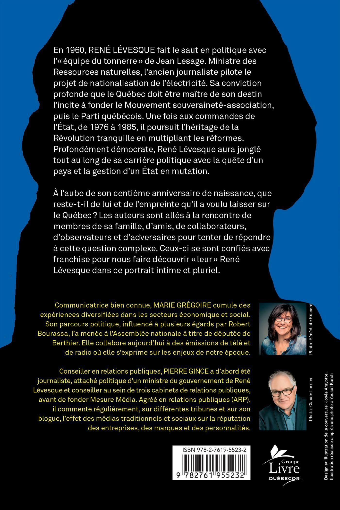 À l'aube de son centième anniversaire de naissance, que reste-t-il de lui et de l'empreinte qu'il a voulu laisser sur le Québec? Les auteurs sont allés à la rencontre de membres de sa famille, d'amis, de collaborateurs, d'observateurs et d'adversaires pour tenter de répondre à cette question complexe. Ceux-ci se sont confiés avec franchise pour nous faire découvrir «leur» René Lévesque dans ce portrait intime et pluriel.