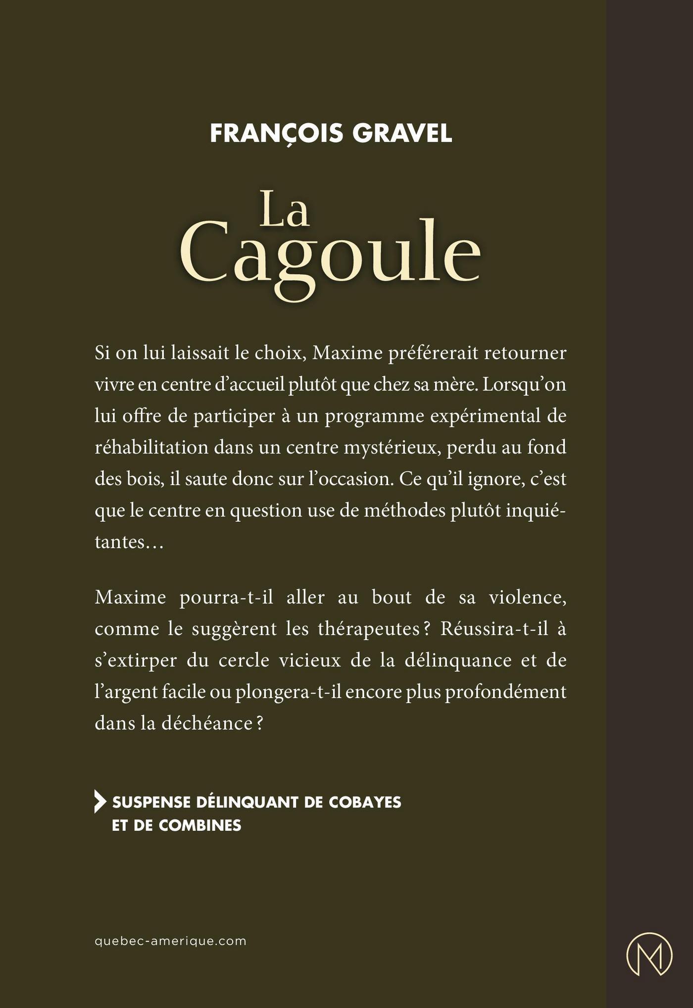À 16 ans, Maxime a déjà tout un dossier. Au sortir de deux séjours en centre d’accueil, le voilà libre… ou à peu près. Décidé à ne pas retourner vivre chez sa mère, il accepte de participer à un programme expérimental de réhabilitation. Méfiant et rusé, cet adolescent au passé compliqué tentera d’abord de saisir le fonctionnement du curieux centre dans lequel il doit passer l’été. Un centre qui, il se l’est bien promis, n’aura pas sa peau. Contraint au silence, caché derrière sa cagoule, Maxime scrute ceux qui l’entourent pour mieux comprendre mais, aussi, pour se protéger. Pourra-t-il aller au bout de sa violence, comme le suggèrent les thérapeutes? Réussira-t-il à s’extirper du cercle vicieux de la délinquance et de l’argent facile ou plongera-t-il encore plus profondément dans la déchéance?