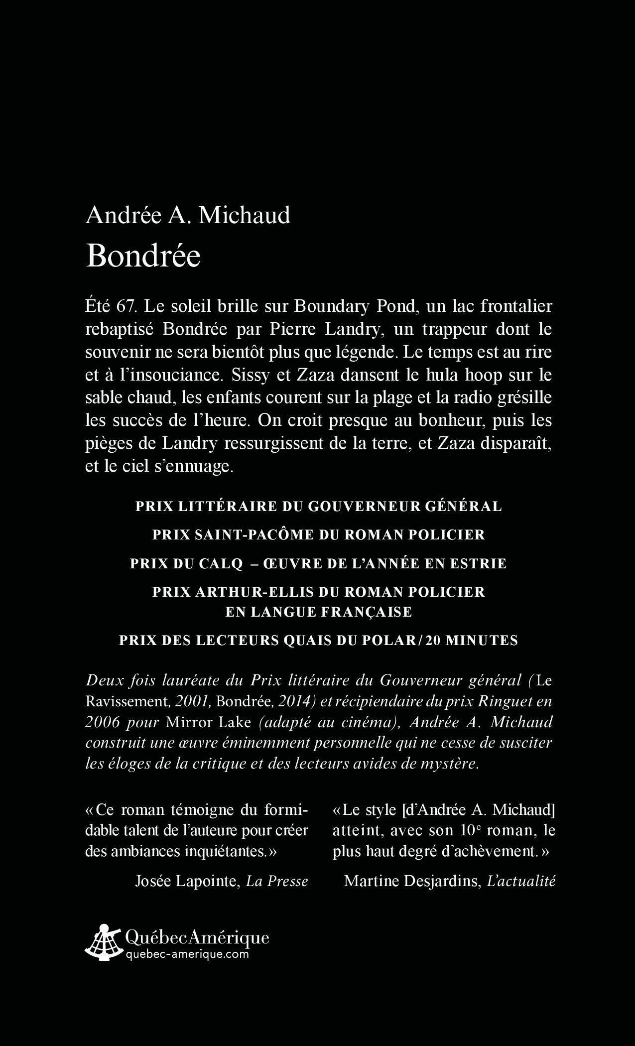 Christine Montalbetti, Jean-Marc Desgent, Andrée A. Michaud, Monique Deland, Patrick Chatelier, Catherine Mavrikakis, Roger des Roches, Valentin Retz, Danielle Fournier, Michaël Trahan, Benoît Vachon, Jessica C., André Ricard, Larissa Corriveau, Emmanuel Kattan, Isabelle Miron, Jean-Claude Brochu, François Thibaux, Pierre Dancot, Michel Marc Bouchard, Guy Beausoleil, Naïm Kattan, Yannick Haenel, Guillaume Asselin, Fernand Ouellette, Filippo Palumbo, Jean-Pierre Vidal, Vincent Filteau