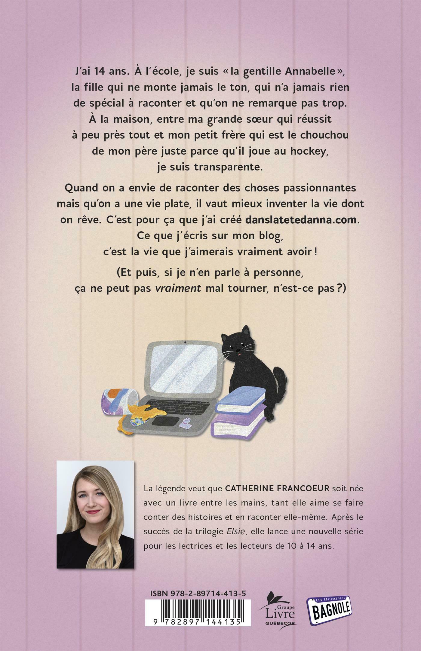 J'ai 14 ans. À l'école, je suis la « gentille Anna », la fille qui ne monte jamais le ton, qui n'a jamais rien à raconter et qu'on ne remarque pas. À la maison, entre ma grande sœur qui réussit à peu près tout et mon petit frère qui est le chouchou de mon père parce qu'il joue au hockey, je suis transparente.