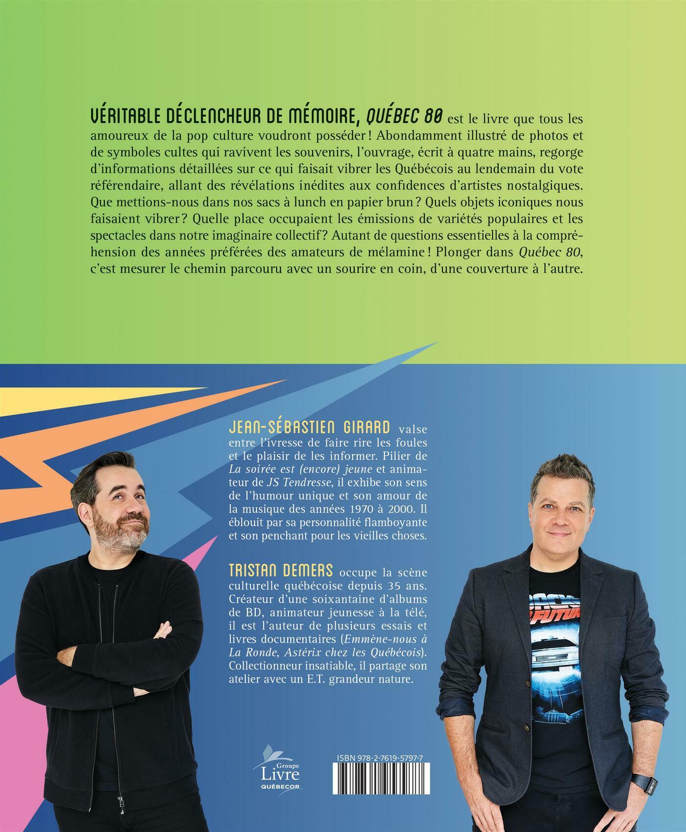Véritable déclencheur de mémoire, Québec 80 est le livre que tous les amoureux de la pop culture voudront posséder! Abondamment illustré de photos et de symboles cultes qui ravivent les souvenirs, l'ouvrage, écrit à quatre mains, regorge d'informations détaillées sur ce qui faisait vibrer les Québécois au lendemain du vote référendaire, allant des révélations inédites aux confidences d'artistes nostalgiques.