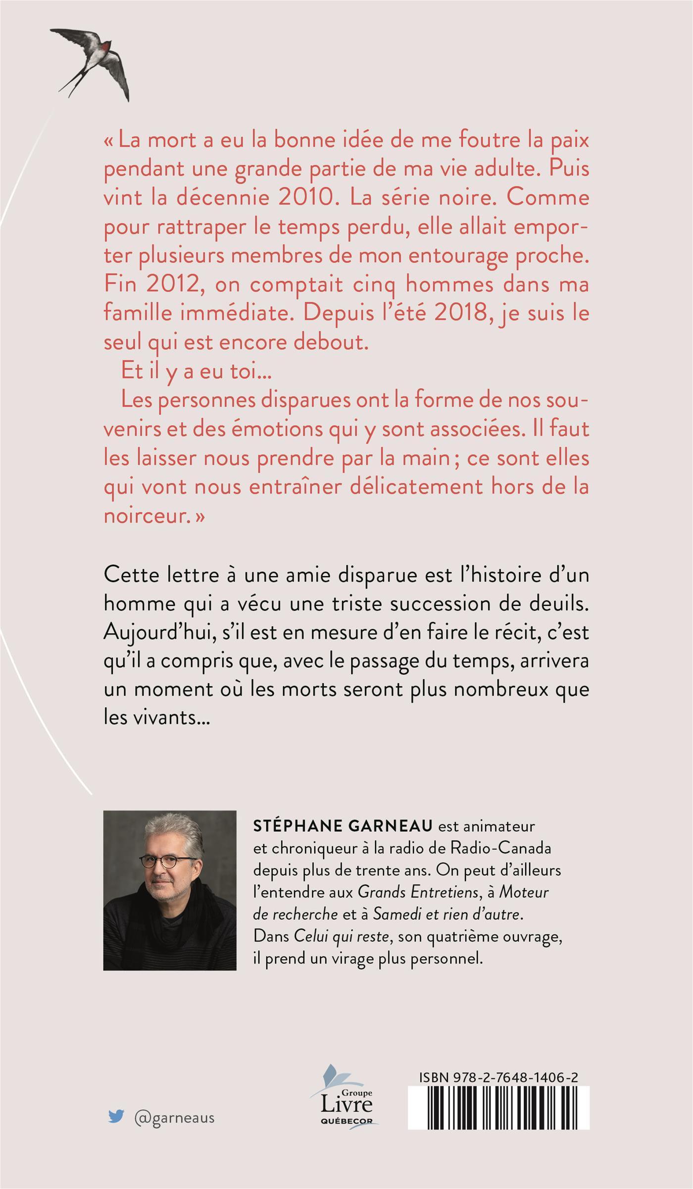 « La mort a eu la bonne idée de me foutre la paix pendant une grande partie de ma vie adulte. Puis vint la décennie 2010. La série noire. Comme pour rattraper le temps perdu, elle allait emporter plusieurs membres de mon entourage proche. Fin 2012, on comptait cinq hommes dans ma famille immédiate. Depuis l'été 2018, je suis le seul qui est encore debout. Et il y a eu toi… Les personnes disparues ont la forme de nos souvenirs et des émotions qui y sont associées. Il faut les laisser nous prendre par la main ; ce sont elles qui vont nous entraîner délicatement hors de la noirceur. »