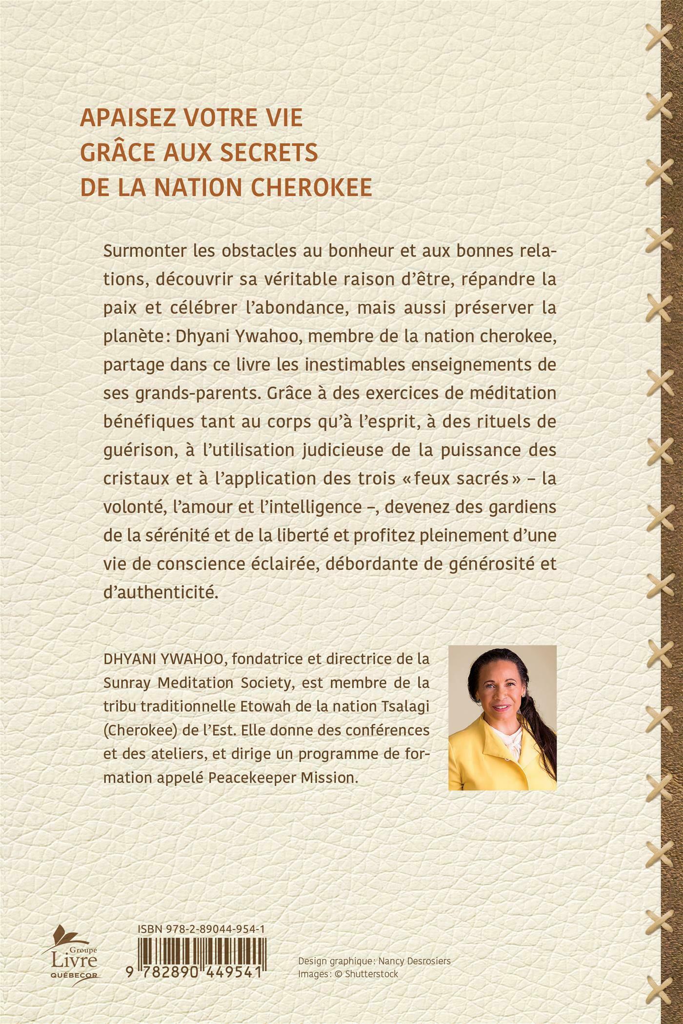 Surmonter les obstacles au bonheur et aux bonnes rela­tions, découvrir sa véritable raison d'être, répandre la paix et célébrer l'abondance, mais aussi préserver la planète : Dhyani Ywahoo, membre de la nation cherokee, partage dans ce livre les inestimables enseignements de ses grands-parents. Grâce à des exercices de méditation bénéfiques tant au corps qu'à l'esprit, à des rituels de guérison, à l'utilisation judicieuse de la puissance des cristaux et à l'application des trois « feux sacrés » – la volonté, l'amour et l'intelligence –, devenez des gardiens de la sérénité et de la liberté et profitez pleinement d'une vie de conscience éclairée, débordante de générosité et d'authenticité.