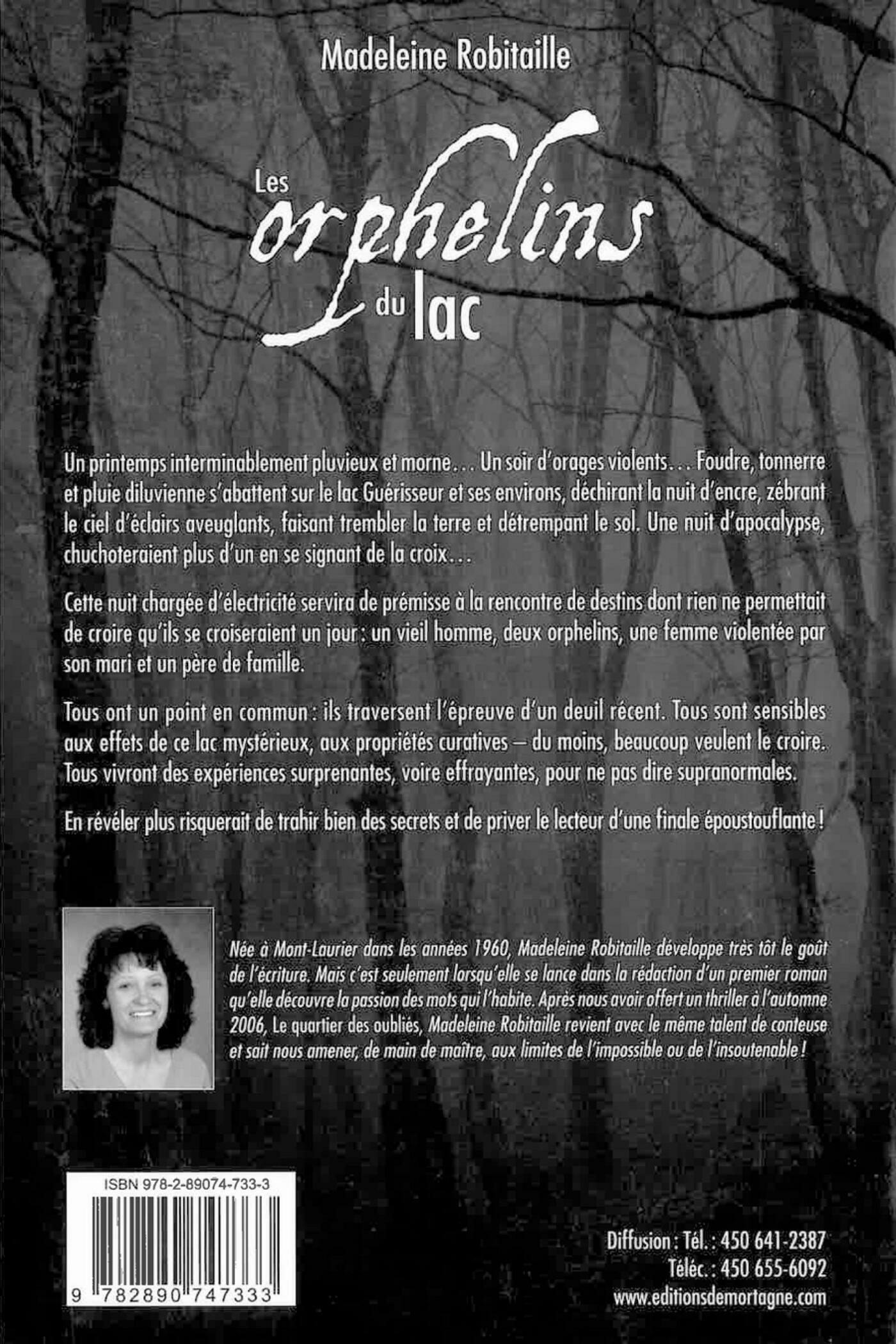 Un printemps interminablement pluvieux et morne... Un soir d'orages vilents... Foudre, tonnerre et pluie diluvienne s'abattent sur le lac Guérisseur et ses environs, déchirant la nuit d'encre, zébrant le ciel d'éclairs aveuglants, faisant trembler la terre et détrempant le sol. Une nuit d'apocalypse, chuchoteraient plus d'un en se signant de la croix...Cette nuit chargée d'électricité servira de prémisse à la rencontre de destins dont rien ne permettait de croire qu'ils se croiseraient un jour : un viel homme, deux orphelins, une femmme violentée par son mari et un père de famille.Tous ont un point en commun : ils traversent l'épreuve d'un deuil récent. Tous sont sensibles aux effets de ce lac mystérueux, aux propriétés curatives - du moins, beaucoup veulent le croire. Tous vivront des expériences surprenantes, voir effrayantes, pour ne pas dire supranormales.En révéler plus risquerait de trahir bien des secrets et de priver le lecteur d'une finale époustouflante!