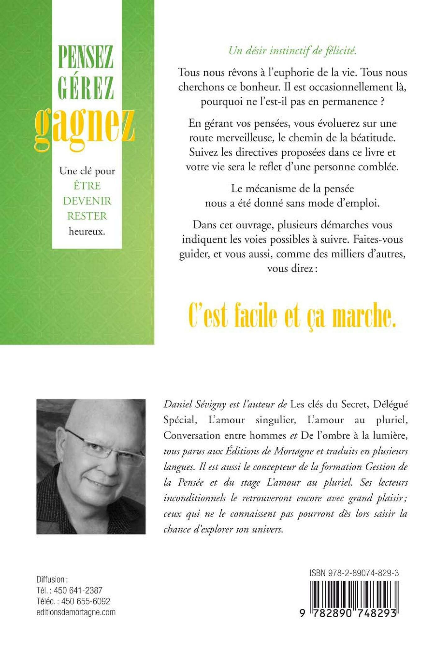 "Un désir instinctif de félicité. Tous nous rêvons à l'euphorie de la vie. Tous nous cherchons ce bonheur. Il est occasionnellement là, pourquoi ne l'est-il pas en permanence? En gérant vos pensées, vous évoluerez sur une route merveilleuse, le chemin de la béatitude. Suivez les directives proposées dans ce livre et votre vie sera le reflet d'une personne comblée. Le mécanisme de la pensée nous a été donné sans mode d'emploi. Dans cet ouvrage, plusieurs démarches vous indiquent les voies possibles à suivre. Faites-vous guider, et vous aussi, comme des milliers d'autres, vous direz : C'est facile et ça marche."