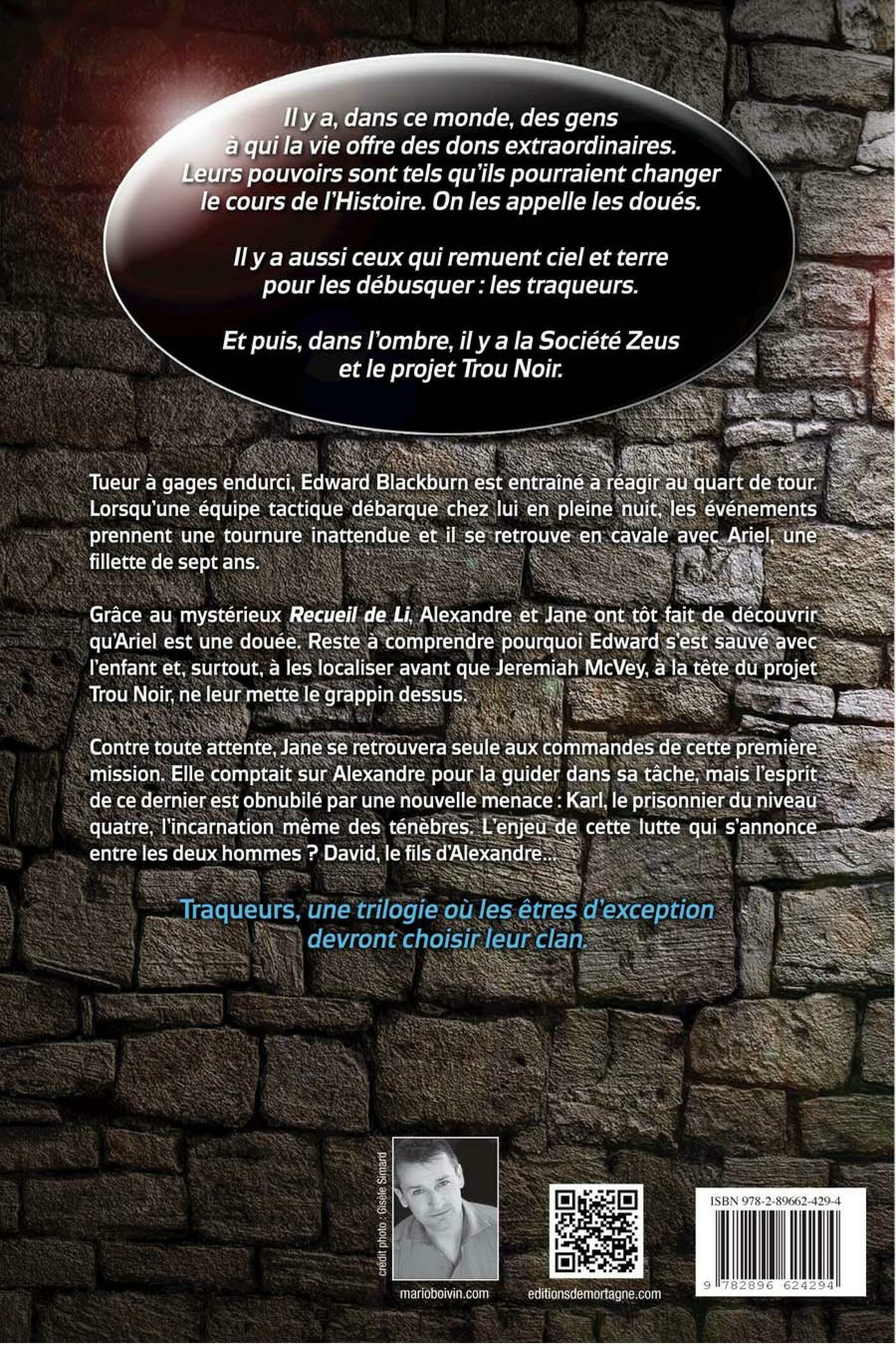 Alexandre Day laisse une impression singulière aux gens qu'il rencontre. Bien malgré lui. Alexandre Day n'est pas un homme ordinaire. Il a des dons. Cadeau que la vie lui a fait à sa naissance. Mais si vous lui demandez son avis, il vous dira que c'est un cadeau empoisonné…Le jour où Alexandre rencontre Rachel pour la première fois, il est conquis. Il retourne ensuite quotidiennement dans le même parc, espérant la revoir. Il l'admire de loin, reste à l'écart, de peur d'être repoussé. A sa grande surprise, c'est Rachel qui viendra vers lui. Le jeune homme comprendra alors qu'il faut un être particulier pour en attirer un autre.Il ignore par contre que Rachel court un grave danger. D'ailleurs, la jeune femme ne le sait pas elle-même. Démuni, Alexandre se tournera vers Jane Hart. Spécialiste dans l'étude des phénomènes paranormaux, elle soumettra le cas du couple à Michael Haggart. Celui-ci occupe un poste-clé dans un hôpital psychiatrique et dirige des recherches en parapsychologie. Ce que Jane ignore toutefois, c'est le lien qu'il entretient avec la Société Zeus.Traqueurs, une trilogie où les êtres d'exception devront choisir leur clan.