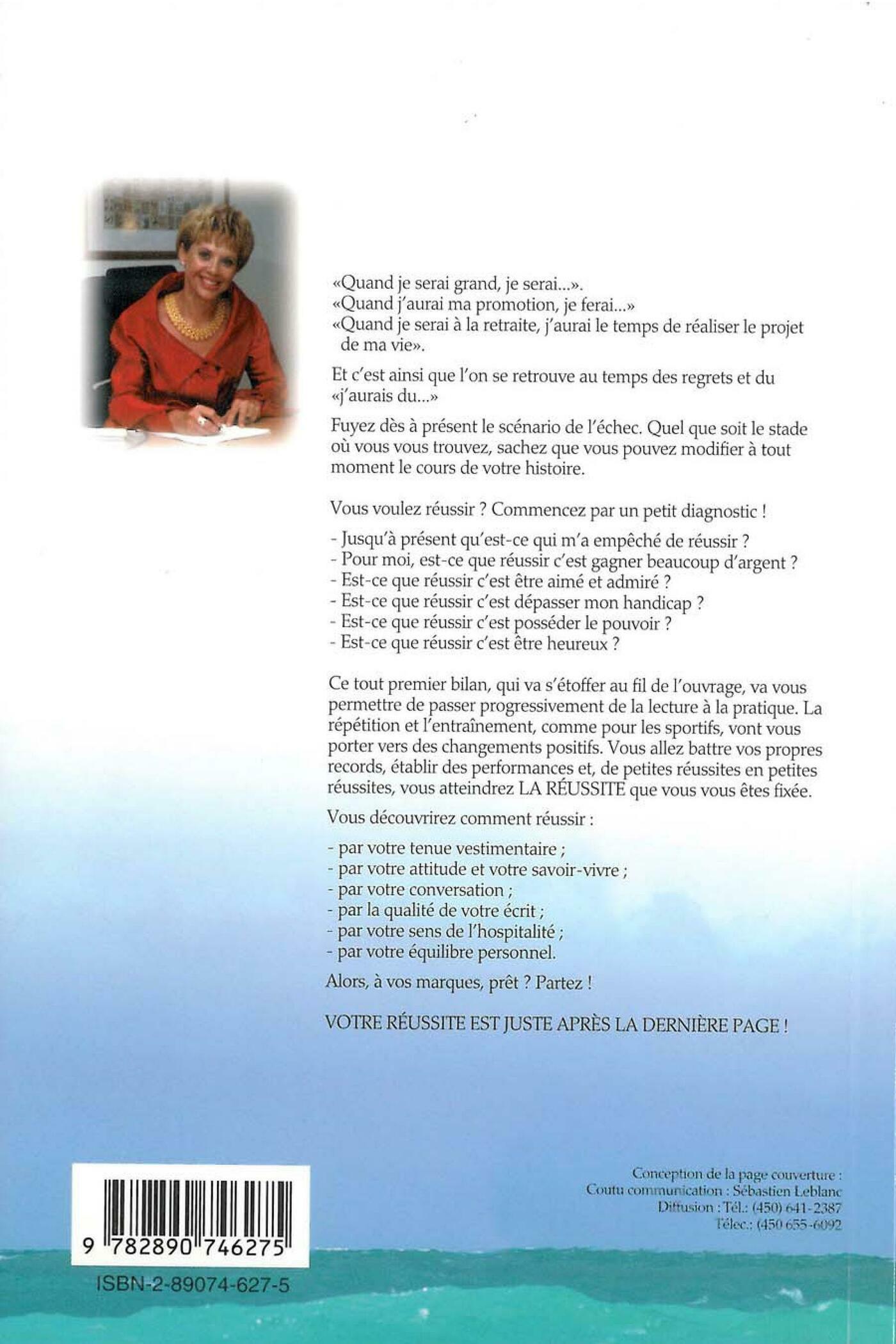 """Quand je serai grand, je serai...""""Quand j'aurai ma promotion, je ferai...""""Quand je serai à la retraite, j'aurai le temps de réaliser le projet de ma vie"".Et c'est ainsi que l'on se retrouve au temps des regrets et du ""j'aurais du...""Fuyez dès à présent le scénario de l'échec. Quel que soit le stade où vous vous trouvez, sachez que vous pouvez modifier à tout moment le cours de votre histoire. Vous voulez réussir? Commencez par un petit diagnostic!- Jusqu'à présent qu'est-ce qui m'a empêché de réussir?- Pour moi, est-ce que réussir c'est gagner beaucoup d'argent?- Est-ce que réussir c'est être aimé et admiré?- Est-ce que réussir c'est dépasser mon handicap?- Est-ce que réussir c'est posséder le pouvoir?- Est-ce que réussir c'est être heureux?Ce tout premier bilan, qui va s'étoffer au fil de l'ouvrage, va vous permettre de passer progressivement de la lecture à la pratique. La répétition et l'entraînement, comme pour les sportifs, vont vous porter vers des changements positifs. Vous allez battre vos propres records, établir des performances et, de petites réussites en petites réussites, vous atteindrez LA REUSSITE que vous vous êtes fixée.Vous découvrirez comment réussir:- par votre tenue vestimentaire;- par votre attitude et votre savoir-vivre;- par votre conversation;- par la qualité de votre écrit;- par votre sens de l'hospitalité;- par votre équilibre personnel.Alors, à vos marques, prêt? Partez!Votre réussite est juste après la dernière page!"
