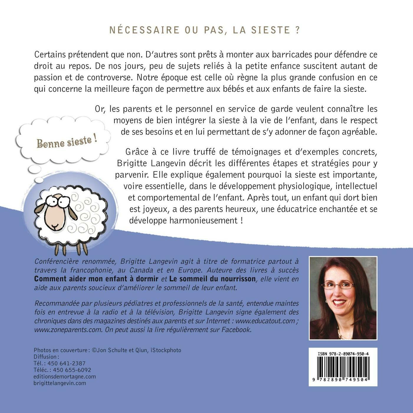 Nécessaire ou pas la sieste?Certains prétendent que non. D'autres sont prêts à monter aux barricades pour défendre ce droit au repos. De nos jours, peu de sujets reliés à la petite enfance suscitent autant de passion et de controverse. Notre époque est celle où règne la plus grande confusion en ce qui concerne la meilleure façon de permettre aux bébés et aux enfants de faire la sieste.Or, les parents et le personnel en service de garde veulent connaître les moyens de bien intégrer la sieste à la vie de l'enfant, dans le respect de ses besoins et en lui permettant de s'y adonner de façon agréable.Grâce à ce livre truffé de témoignages et d'exemples concrets, Brigitte Langevin décrit les différentes étapes et stratégies pour y parvenir. Elle explique également pourquoi la sieste est importante, voire essentielle, dans le développement physiologique, intellectuel et comportemental de l'enfant. Après tout, un enfant qui dort bien est joyeux, a des parents heureux, une éducatrice enchantée et se développe harmonieusement!