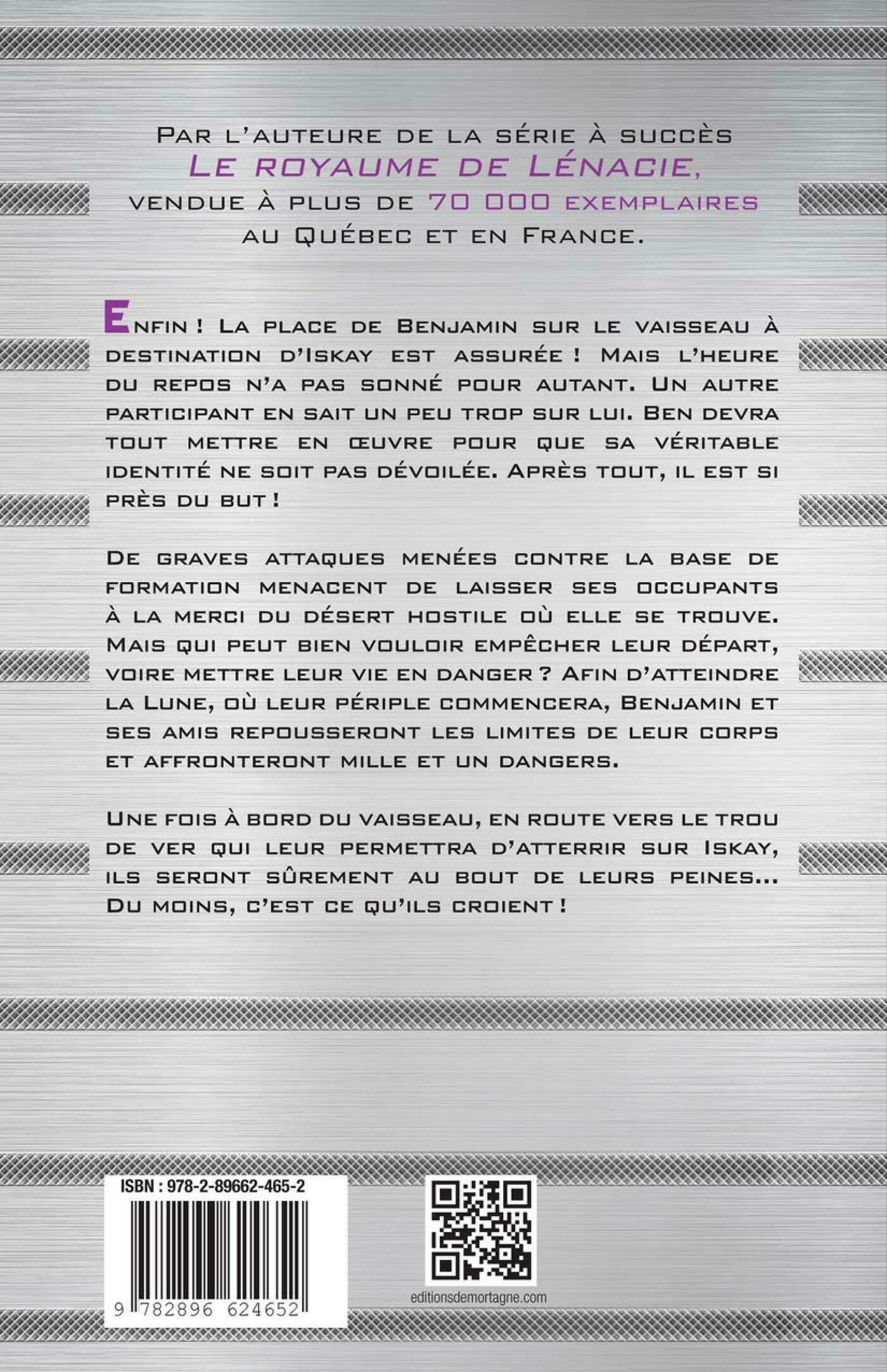 Enfin ! La place de Benjamin sur le vaisseau à destination d'Iskay est assurée! Mais l'heure du repos n'a pas sonné pour autant. Un autre participant en sait un peu trop sur lui. Ben devra tout mettre en oeuvre pour que sa véritable identité ne soit pas dévoilée. Après tout, il est si près du but ! De graves attaques menées contre la base de formation menacent de laisser ses occupants à la merci du désert hostile où elle se trouve. Mais qui peut bien vouloir empêcher leur départ, voire mettre leur vie en danger ? Afin d'atteindre la Lune, où leur périple commencera, Benjamin et ses amis repousseront les limites de leur corps et affronteront mille et un dangers. Une fois à bord du vaisseau, en route vers le trou de ver qui leur permettra d'atterrir sur Iskay, ils seront sûrement au bout de leurs peines... Du moins, c'est ce qu'ils croient !