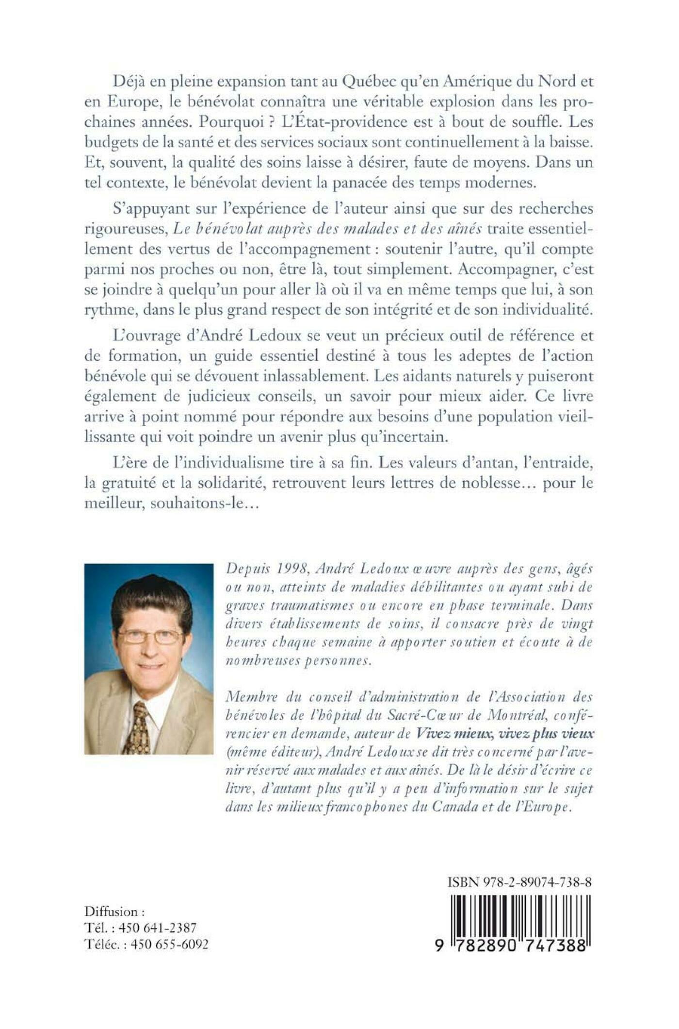 Déjà en pleine expansion tant au Québec qu'en Amérique du Nord et en Europe, le bénévolat connaîtra une véritable explosion dans les prochaines années. Pourquoi? L'Etat-providence est à bout de souffle. Les budgets de la santé et des services sociaux sont continuellement à la baisse. Et, souvent, la qualité des soins laisse à désirer, faute de moyens. Dans un tel contexte, le bénévolat devient la panacée des temps modernes. S'appuyant sur l'expérience de l'auteur ainsi que sur des recherches rigoureuses, Le bénévolat auprès des malades et des aînés traite essentiellement des vertus de l'accompagnement: soutenir l'autre, qu'il compte parmi nos proches ou non, être là, tout simplement. Accompagner, c'est se joindre à quelqu'un pour aller là où il va en même temps que lui, à son rythme, dans le plus grand respect de son intégrité et de son individualité.L'ouvrage d'André Ledoux se veut un précieux outil de référence et de formation, un guide essentiel destiné à tous les adeptes de l'action bénévole qui se dévouent inlassablement. Les aidants naturels y puiseront également de judicieux conseils, un savoir pour mieux aider. Ce livre arrive à point nommé pour répondre aux besoins d'une population vieillissante qui voit poindre un avenir plus qu'incertain.L'ère de l'individualisme tire à sa fin. Les valeurs d'antan, l'entraide, la gratuité et la solidarité, retrouvent leurs lettres de noblesse... pour le meilleur, souhaitons-le...