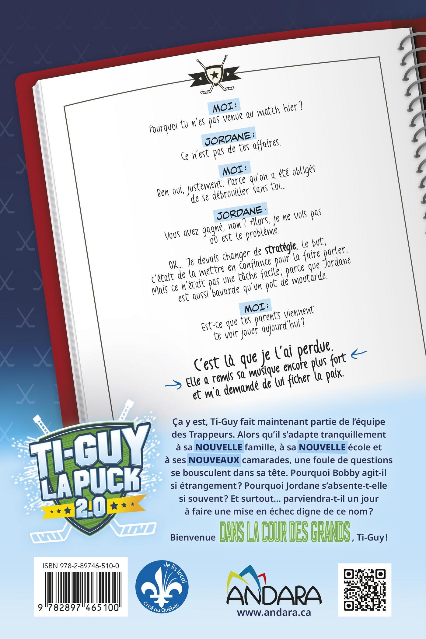 Ça y est, Ti-Guy fait maintenant partie de l’équipe des Trappeurs. Alors qu’il s’adapte tranquillement à sa NOUVELLE famille, à sa NOUVELLE école et à ses NOUVEAUX camarades, une foule de questions se bousculent dans sa tête. Pourquoi Bobby agit-il si étrangement ? Pourquoi Jordane s’absente-t-elle si souvent ? Et surtout… parviendra-t-il un jour à faire une mise en échec digne de ce nom ? Bienvenue , Ti-Guy !