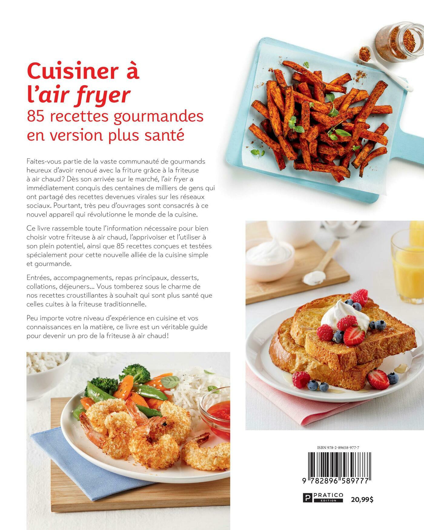 Faites-vous partie de la vaste communauté de gourmands heureux d’avoir renoué avec la friture grâce à la friteuse à air chaud ? Dès son arrivée sur le marché, l’air fryer a immédiatement conquis des centaines de milliers de gens qui ont partagé des recettes devenues virales sur les réseaux sociaux. Pourtant, très peu d’ouvrages sont consacrés à ce nouvel appareil qui révolutionne le monde de la cuisine.Ce livre rassemble toute l’information nécessaire pour bien choisir votre friteuse à air chaud, l’apprivoiser et l’utiliser à son plein potentiel, ainsi que 85 recettes conçues et testées spécialement pour cette nouvelle alliée de la cuisine simple et gourmande.Entrées, accompagnements, repas principaux, desserts, collations, déjeuners… Vous tomberez sous le charme de nos recettes croustillantes à souhait qui sont plus santé que celles cuites à la friteuse traditionnelle. Peu importe votre niveau d’expérience en cuisine et vos connaissances en la matière, ce livre est un véritable guide pour devenir un pro de la friteuse à air chaud !