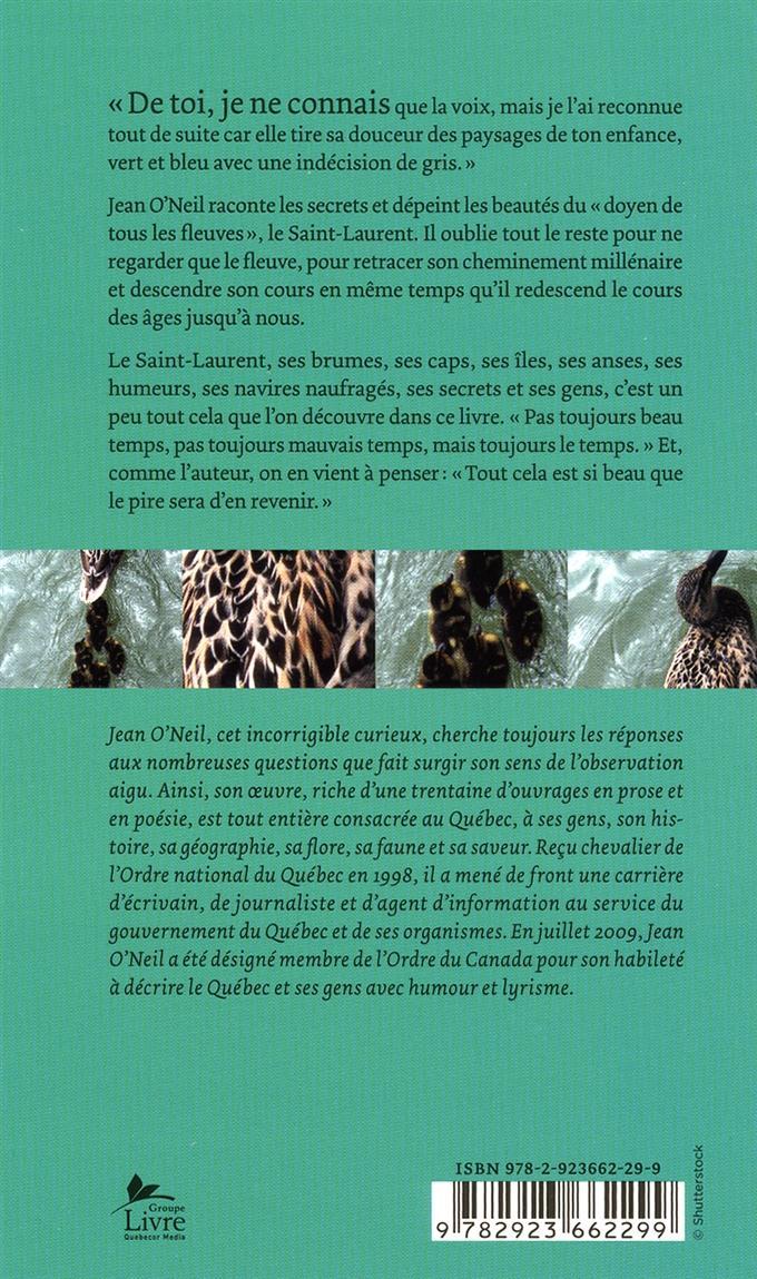 Le Saint-Laurent, ses brumes, ses caps, ses îles, ses anses, ses humeurs, ses navires naufragés, ses secrets et ses gens, c’est un peu tout cela que l’on découvre dans ce livre, tel qu’en un coffret précieux. L’écrivain Jean O’Neil y a rangé avec soin le portrait du « doyen des fleuves », paré de ses habits d’été. Si l’on se promène sur son dos à bord d’un bateau de croisière ou d’un traversier, voici tout le Québec qui défile à bâbord et à tribord. Si l’on s’arrête sur une de ses îles, sur une grève ou sur un pont, on peut l’entendre chuchoter les histoires de tous ceux et celles qui vivaient, qui vivent et qui vivront le long de ses rives. L’écrivain est attentif. Il prend le temps d’écouter et de regarder ce fleuve qui, lui aussi, a le temps. « Pas toujours beau temps, pas toujours mauvais temps, mais toujours le temps. » Et, comme l’auteur, on en vient à penser : « Tout cela est si beau que le pire sera d’en revenir. »Inévitablement, il faut revenir. L’automne ramène la belle visite des vacanciers et des touristes dans les villes où le fleuve est si bien caché. Mais, avant de s’en aller, il reste à saluer Mme Perron. Elle nous a si bien reçus dans sa maison de Cap-aux-Oies, avec son sourire qui nous attendait à la porte d’entrée. Et, en lui disant au revoir, on se rend compte, soudain, que « ces paysages nobles, grandioses et sévères qui charment les passants […] seraient inhabitables sans la chaleur humaine qui veille dans les maisons ».
