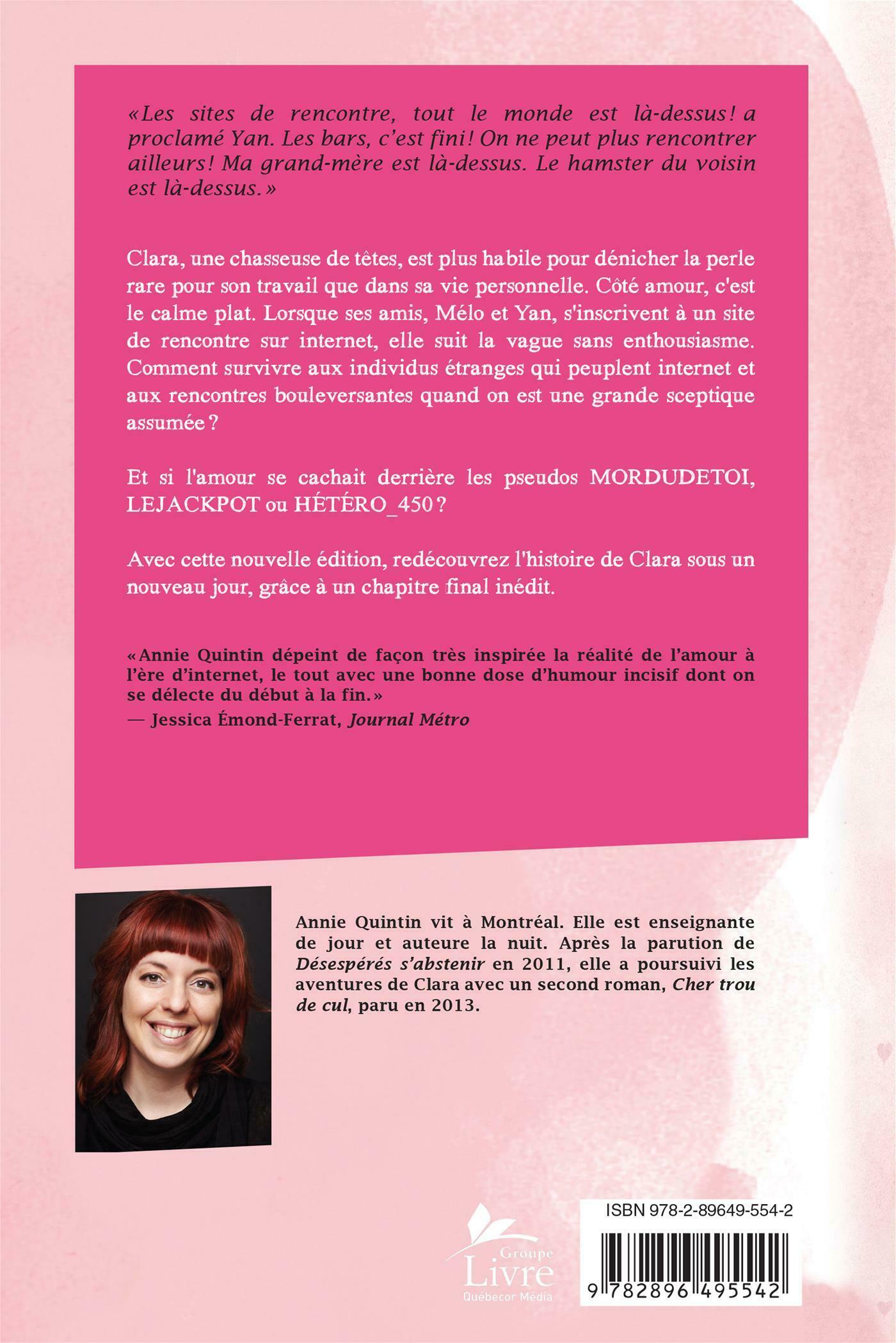 « Annie Quintin dépeint de façon très inspirée la réalité de l'amour à l'ère d'internet, le tout avec une bonne dose d'humour incisif dont on se délecte du début à la fin. »