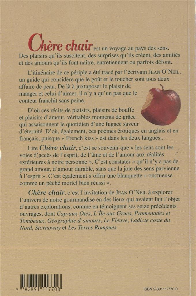 Chère chair est un voyage au pays des sens. Des plaisirs qu'ils suscitent, des surprises qu'ils créent, des amitiés et des amours qu'ils font naître, entretiennent ou parfois défont.