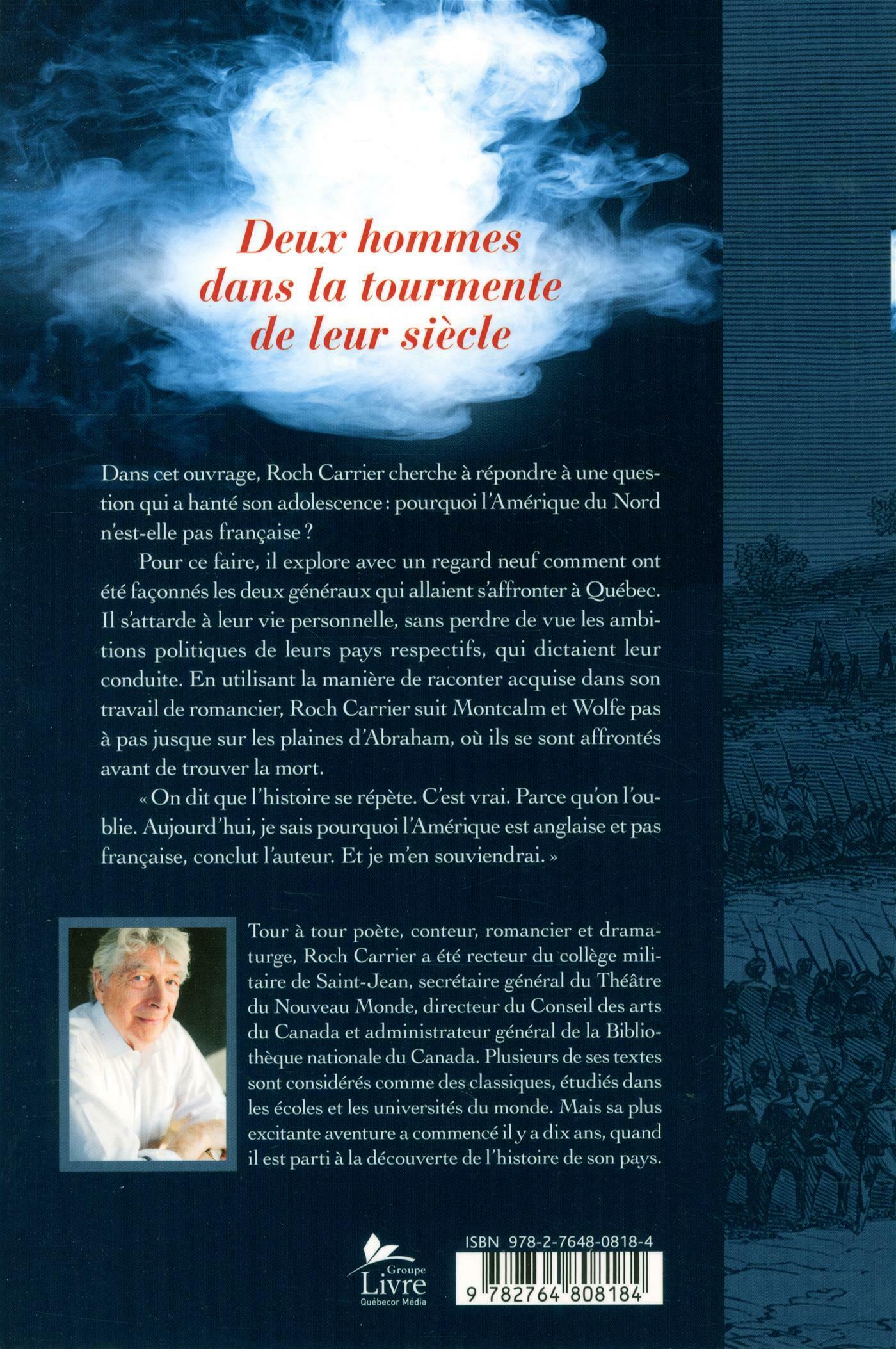 .Pour ce faire, il explore avec un regard neuf comment ont été façonnés les deux généraux qui allaient s'affronter à Québec. Il s'attarde à leur vie personnelle, sans perdre de vue les ambitions politiques de leurs pays respectifs, qui dictaient leur conduite. En utilisant la manière de raconter acquise dans son travail de romancier, Roch Carrier suit Montcalm et Wolfe pas à pas jusque sur les plaines d'Abraham, où ils se sont affrontés avant de trouver la mort.