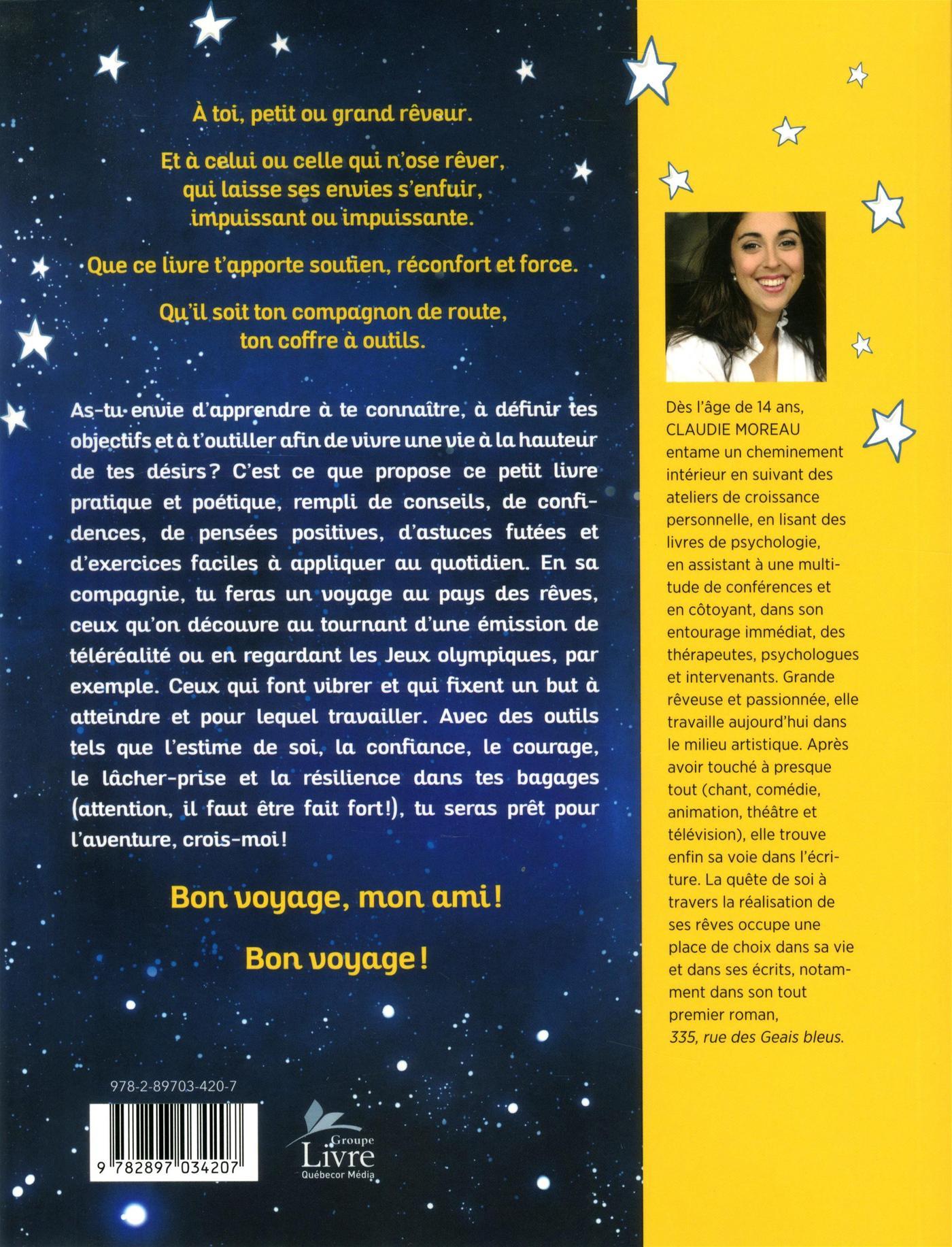 As-tu envie d'apprendre à te connaître, à définir tes objectifs et à t'outiller afin de vivre une vie à la hauteur de tes désirs? C'est ce que propose ce petit livre pratique et poétique, rempli de conseils, de confidences, de pensées positives, d'astuces futées et d'exercices faciles à appliquer au quotidien. En sa compagnie, tu feras un voyage au pays des rêves, ceux qu'on découvre au tournant d'une émission de téléréalité ou en regardant les Jeux olympiques, par exemple. Ceux qui font vibrer et qui fixent un but à atteindre et pour lequel travailler. Avec des outils tels que l'estime de soi, la confiance, le courage, le lâcher-prise et la résilience dans tes bagages (attention, il faut être fait fort!), tu seras prêt pour l'aventure, crois-moi! Bon voyage, mon ami! Bon voyage!