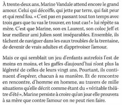 Marie-Claude Élie-Morin, Pierre-Olivier Pineau, Gabrielle Immarigeon, Marc-André Cyr, Caroline R. Paquette, Binh An Vu Van, Nicolas Langelier, Laurence Côté-Fournier, Evelyne de la Chenelière, Geneviève Lapointe, Philippe Hurteau, Stéphane Lafleur, Nicolas Charette, Rémy Bourdillon, Pierre-Yves Cezard, Rafaële Germain, Philippe Nassif, Rainer Maria Rilke, Sarah Berthiaume, Catherine Mavrikakis, Étienne Mérineau, Margie Gillis, Federico Barahona, Alexandra Nadeau, Boris Proulx, Ophélie Lechat, Élizabeth Grenier, Clément Sabourin, Bouchra Ouatik, Francis Plourde, Marie-Josée Richard, Sébastien Harrisson, Cécile Jaillard